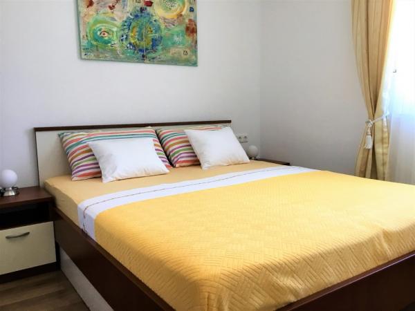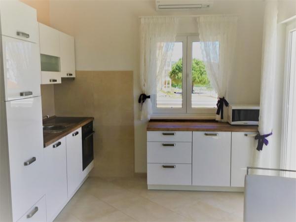 Villa Nikaraoni situado en la isla de Ciovo cerca de Trogir. Los apartamentos modernos y totalmente equipados en la nueva casa con solo 4 apartamentos (planta baja, primera planta y ático). La casa está situada en una tranquila y soleada, con mucha vegetación en el amplio patio (1000 m2). En el patio hay plazas de aparcamiento y barbacoa. Los balcones son amplias y con vistas al mar. Los apartamentos están equipados con nuevas y modernas cocinas con lavavajillas, microondas, refrigerador grande, TV vía satélite, conexión Wi-Fi gratuita, una lavadora ... El precio incluye ropa de cama y toallas (no de playa) y limpieza.