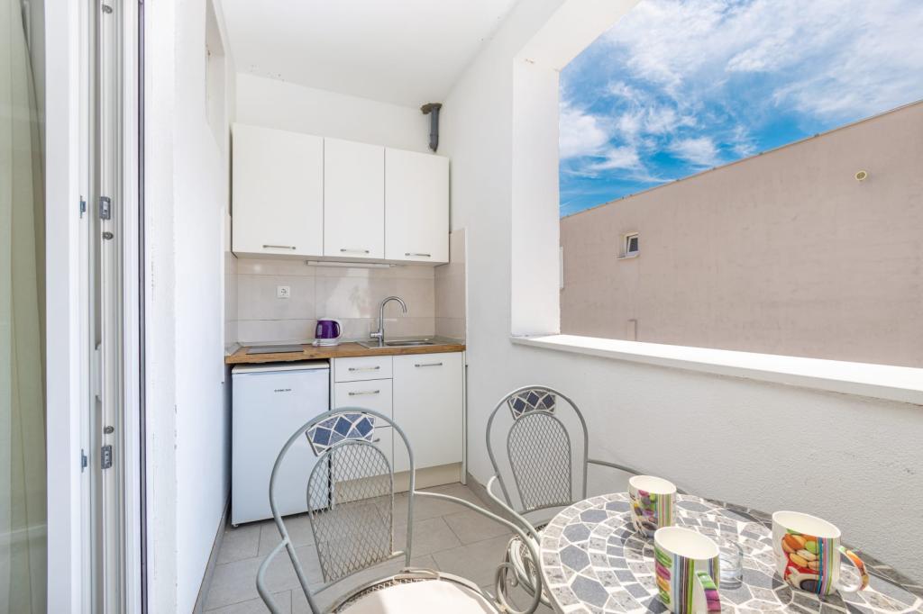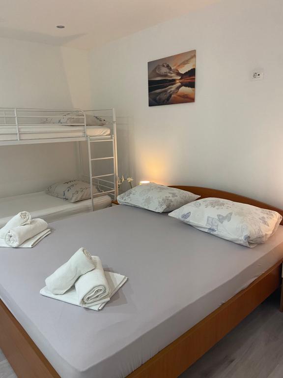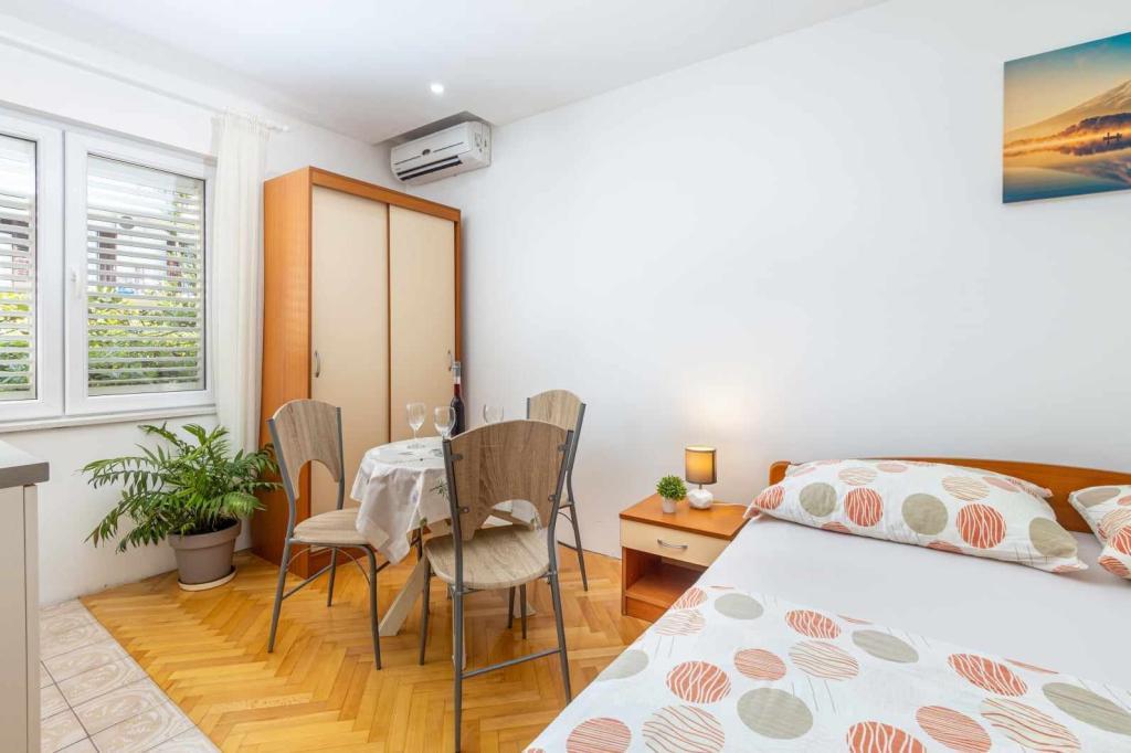 Apartamento estudio Tucepi Anita. Apartamento tipo estudio y cocina totalmente equipada, cama doble, litera, aire acondicionado, baño, terraza, balcón, ropa de cama, toallas, parking gratuito, cama supletoria bajo petición, cuna. Aquí hay una playa a 200 metros del apartamento. eso es hasta 4 minutos de arena. La playa es muy grande, hay sombras, la playa es pequeña. Tiendas, restaurantes, cafeterías están muy cerca del apartamento, hasta 100 metros.