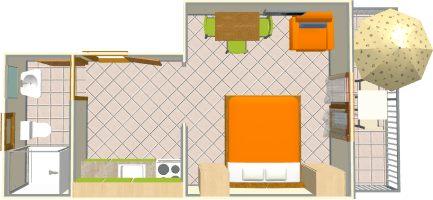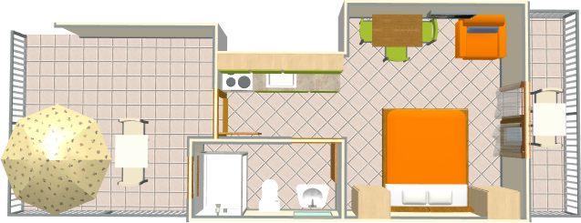 Apartamento para dos personas y una cama supletoria (20 m2)