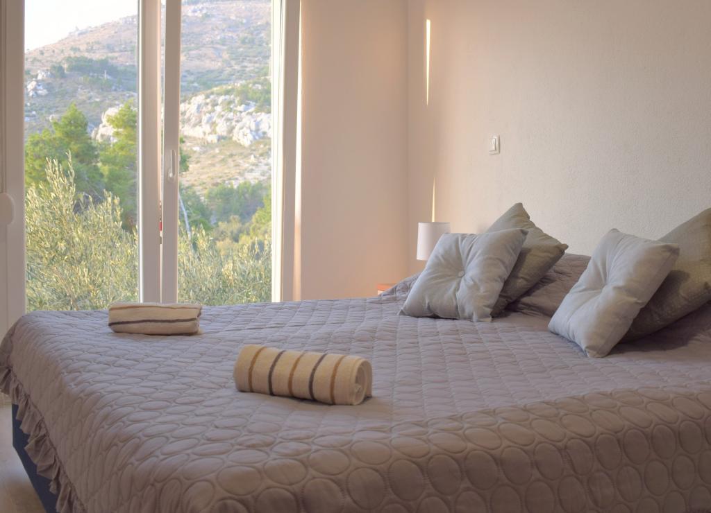Un gran apartamento a un buen precio, ubicado en una colina en un olivar, que lo hace muy encantador, con una hermosa vista de la ciudad, las montañas y el mar. El apartamento está muy bien equipado (cada habitación tiene su propio baño, televisión, cocina con equipo de cocina y platos), limpia y bien cuidada. Una ventaja adicional son los anfitriones muy agradables. El camino a las playas tiene un ritmo tranquilo de 7 minutos. Volvimos muy contentos Marin: gracias por la buena recepción.