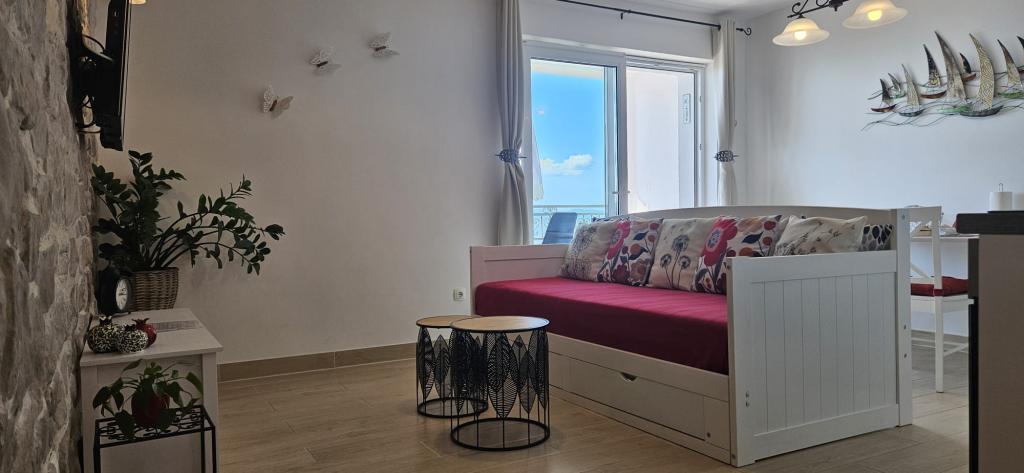 El apartamento de Miron superó nuestras expectativas. La vista desde la terraza es impresionante, no la oscurecen los árboles. El sonido del mar se escucha día y noche. El apartamento está super equipado, hay cafetera, cafetera, menaje de cocina con todo el equipamiento, lavadora, plancha y tabla de planchar, hamacas, etc. Los propietarios fueron super amables, recibimos un vino casero de bienvenida, hecho en casa. pastel, licor de cereza y un obsequio casero (vela, lavanda y jabones en una caja de madera pintada a mano bellamente decorada). El apartamento está muy limpio, decorado con buen gusto y alojarse en este lugar es un placer. Ya anhelamos volver allí.