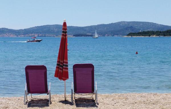 Apartamento Nena es un apartamento de 42 m2 en el segundo piso y está ubicado en una zona tranquila a las afueras de la playa Turnja, frente al mar. Turanj es una pasarela conectada con el lugar Sv. Philip James (10 minutos) y está cerca de tiendas, restaurantes y otras atracciones. El edificio cuenta con 2 dormitorios, baño, sala de estar con cocina y comedor y una terraza cubierta con vistas al mar. En el patio del edificio también hay una barbacoa y se puede utilizar. El apartamento es moderno y totalmente equipado con aire acondicionado, TV vía satélite, parrilla eléctrica, cafetera, lavavajillas y lavadora, microondas, etc. Los huéspedes tienen una plaza de aparcamiento en frente del edificio. El apartamento puede alojar hasta 4 personas.
