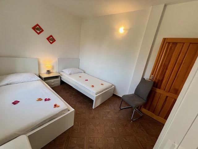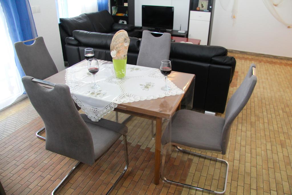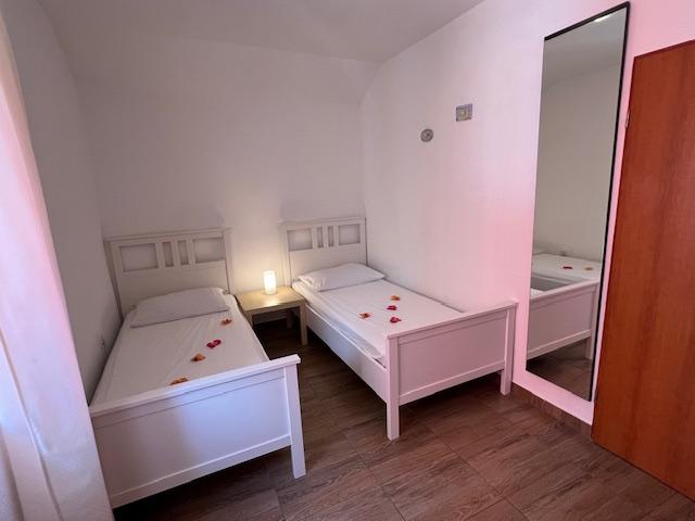 Nuestros apartamentos disponen de aire acondicionado, TV vía satélite, Wi-Fi, aparcamiento en su propia propiedad, lavadora. Esto está incluido en el precio. Disponemos de una zona de barbacoa que nuestros huéspedes podrán utilizar de forma gratuita, incluida en el precio. Nuestros apartamentos están equipados con todo lo necesario para tus vacaciones. Está ubicado en una parcela de 3500 m2. Apartamento de 150 m², 2 dormitorios, cocina, comedor, baño con ducha, salón y terraza. Distancia al mar directamente sobre el mar ya 100 m del mar. Alquilo un apartamento. Indira, Bepo, Grgo, casa móvil Luka y casa de vacaciones Indira.
