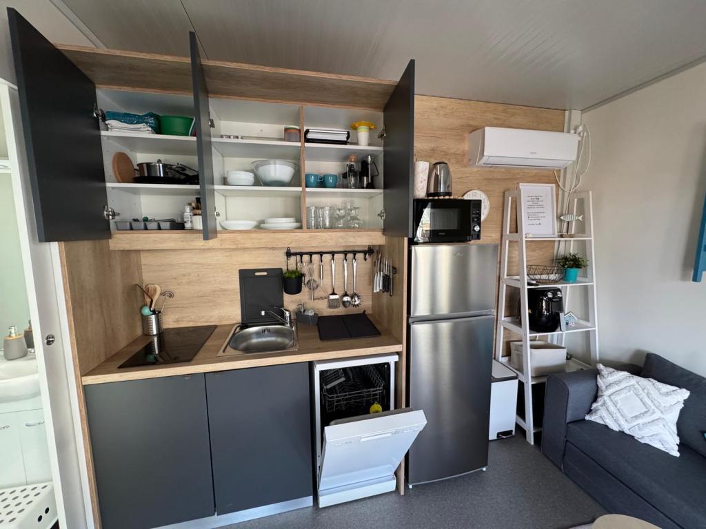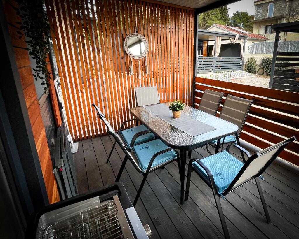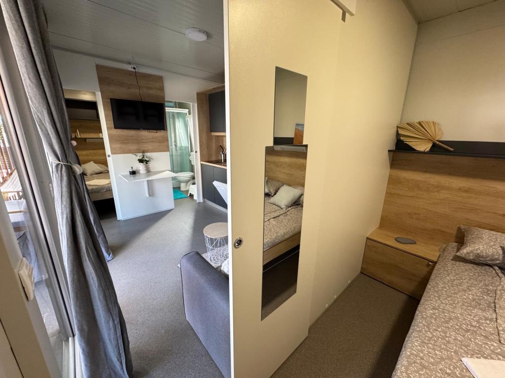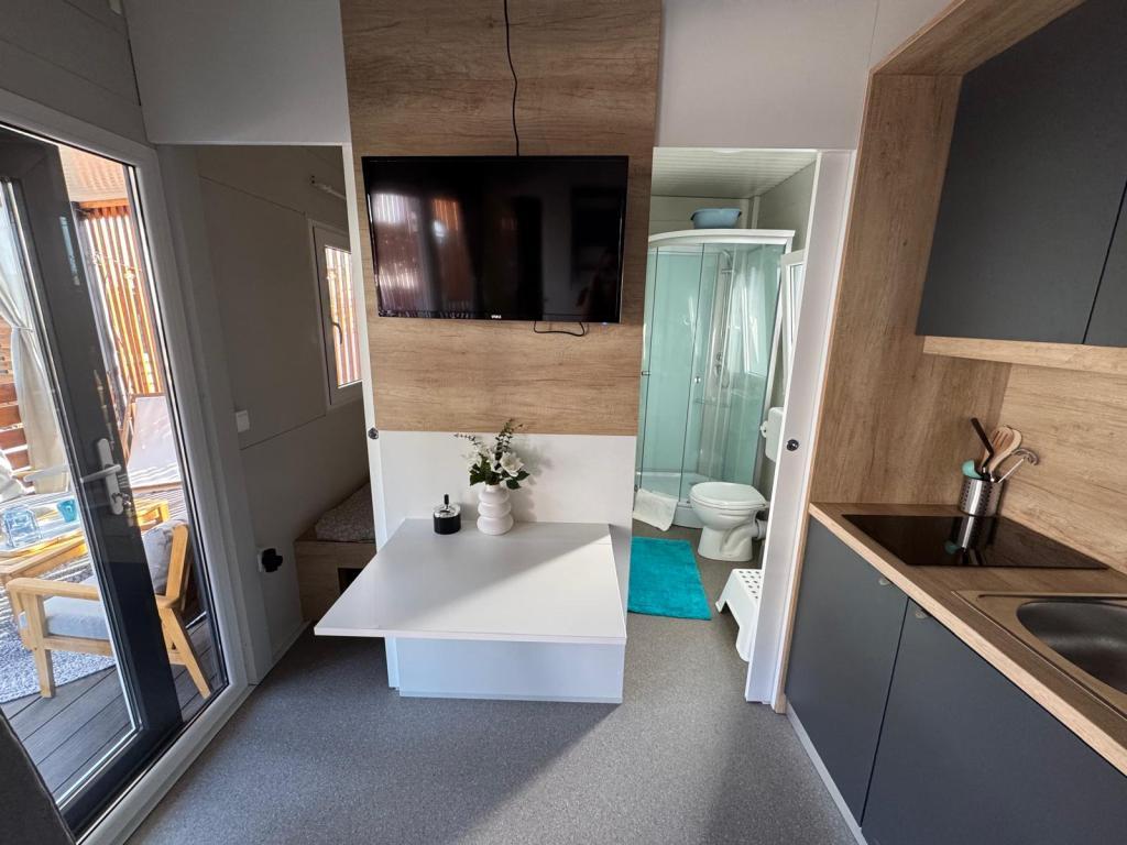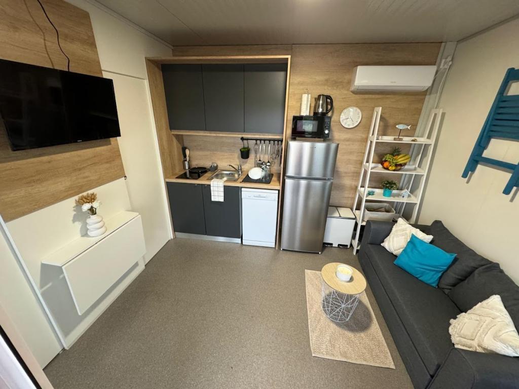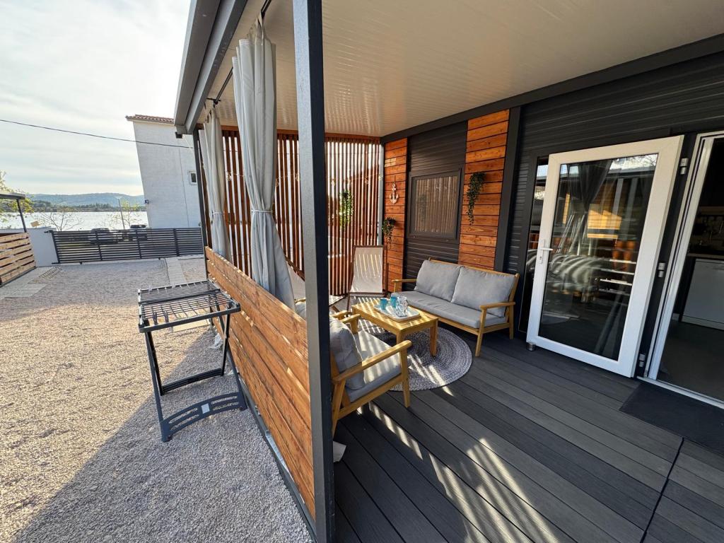 Nuestras casas móviles Marea están diseñadas para que disfrute de unas vacaciones sin preocupaciones, cómodas y llenas de momentos de relax. Cada casa está cuidadosamente decorada y totalmente equipada para una estancia agradable, ideal para familias o parejas que buscan privacidad, tranquilidad y todas las comodidades de un hogar moderno junto al mar. Se encuentran en un pequeño camping familiar vallado, a tan solo 30 metros de la playa, en la tranquila localidad de Turanj, rodeada de vegetación y con un ambiente mediterráneo. Equipamiento e instalaciones de ambas casas: Dos dormitorios con camas dobles. Cocina totalmente equipada (placa de inducción, lavavajillas, frigorífico grande). Salón: sofá cama, Smart TV, Wi-Fi (Starlink), aire acondicionado. Baño: ducha, toallas, secador de pelo. Amplia terraza con muebles y tumbonas. Aparcamiento seguro (Marea 1 - Plaza n.º 3 | Marea 2 - Plaza n.º 5). Regalo de bienvenida. Las casas disponen de aire acondicionado y están disponibles todo el año, lo que las convierte en la opción ideal tanto para unas vacaciones de verano como para una escapada tranquila de invierno junto al mar.
