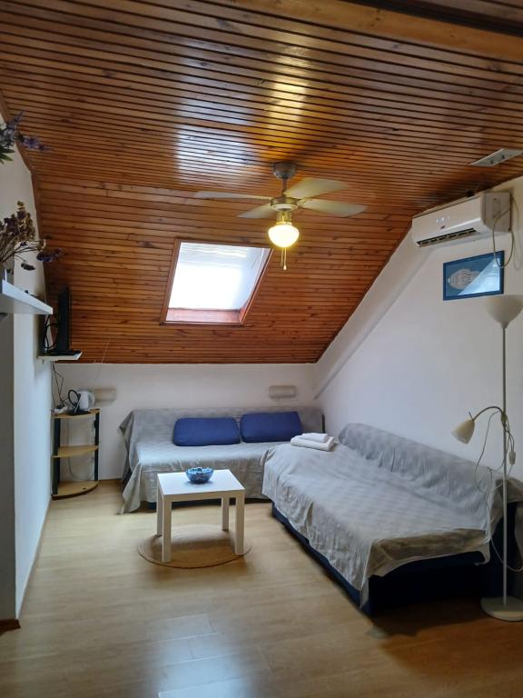 La casa con apartamentos (máximo 20 personas) se encuentra en el centro de Ugljan, a 5 minutos del mar. Restaurante etno en la casa, parrilla al aire libre, vegetación mediterránea alrededor de la casa, ideal para vacaciones, estacionamiento junto al alojamiento. Muy cercano a cajeros automáticos, mercados, campos deportivos, cafeterías. Lavadora bajo petición. Posibilidad de excursiones en barco para los huéspedes del apartamento.