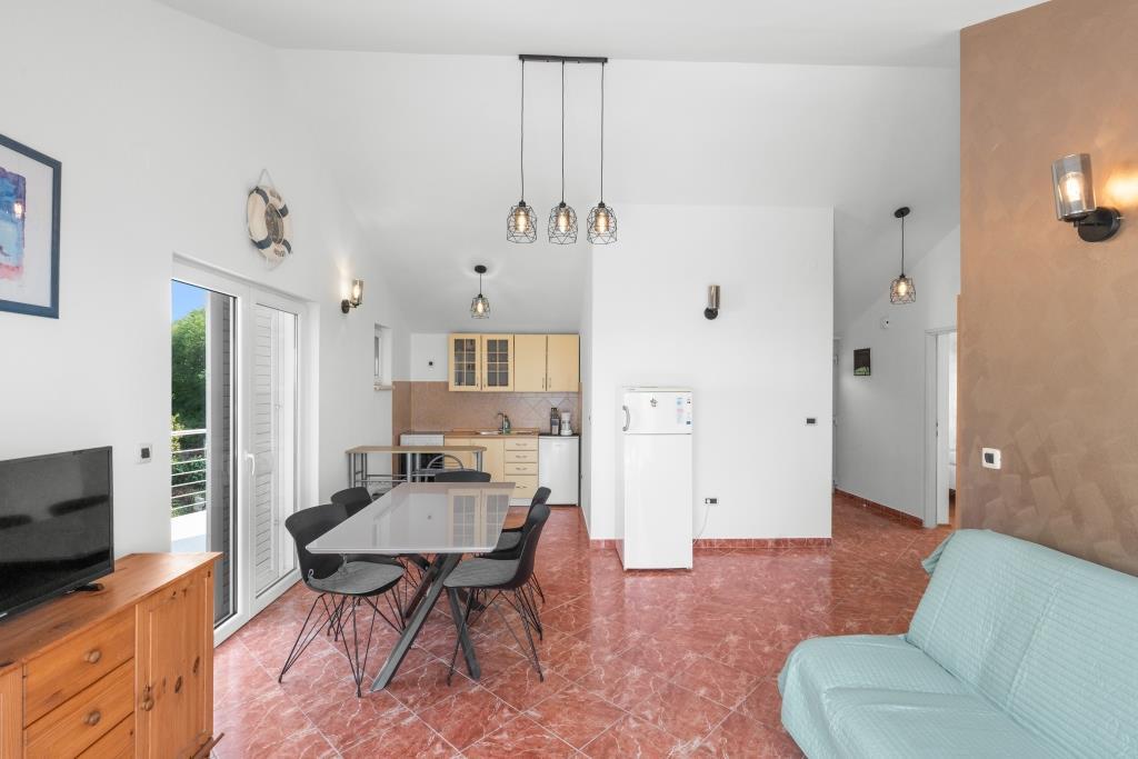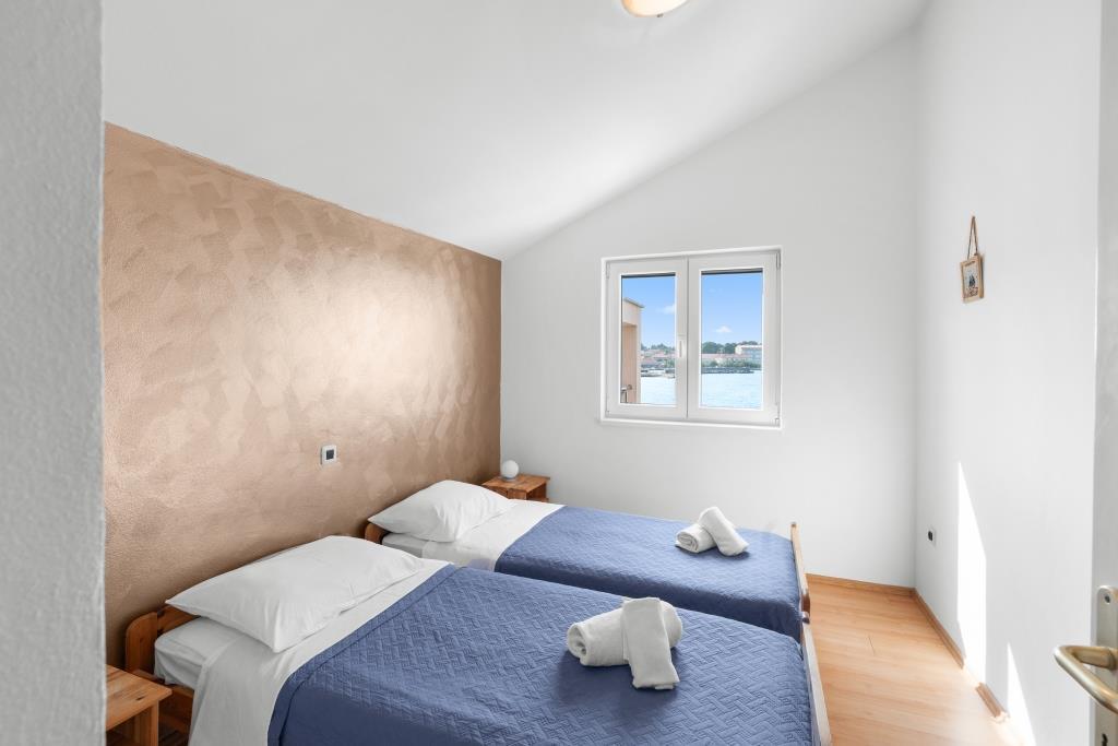 Los apartamentos están situados junto al mar en un entorno rural tranquilo y acogedor. Cada apartamento tiene una gran terraza con vistas al mar. Están rodeados de un jardín mediterráneo ajardinado adecuado para que los niños jueguen. En el jardín hay tumbonas y una barbacoa compartida. Cada apartamento tiene 2 baños. Cerca, a 5 minutos a pie, se encuentra el centro donde hay un mercado con productos de granjas locales, así como tiendas y restaurantes. La asistencia médica de emergencia está disponible las 24 horas, los 7 días de la semana. La playa que hay justo enfrente del apartamento es de guijarros, y hay varias playas a poca distancia donde también hay una playa de arena. Llegando en coche: la autopista conduce directamente al puerto de ferry de Gaženica. Después de esto, abordarás el ferry a Preko. En verano las colas son frecuentes y pasan al menos cada hora. Desde el puerto de ferry de Preko, tome la carretera principal de la isla para llegar a la ciudad de Ugljan, que está a 10 km de distancia. Llegada en avión: Desde el aeropuerto de Zadar en autobús o taxi en 15 minutos. Llegarás directamente al puerto de Gaženica donde tomarás el ferry hacia Preko.