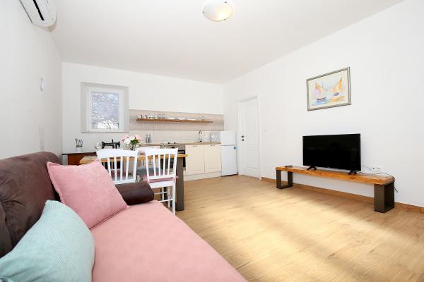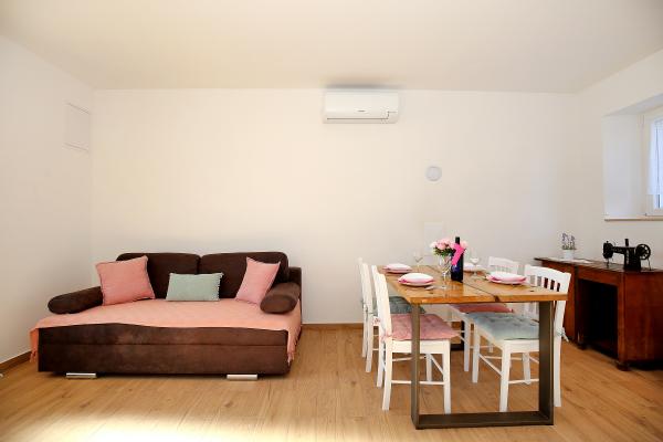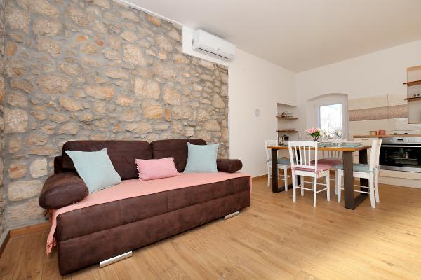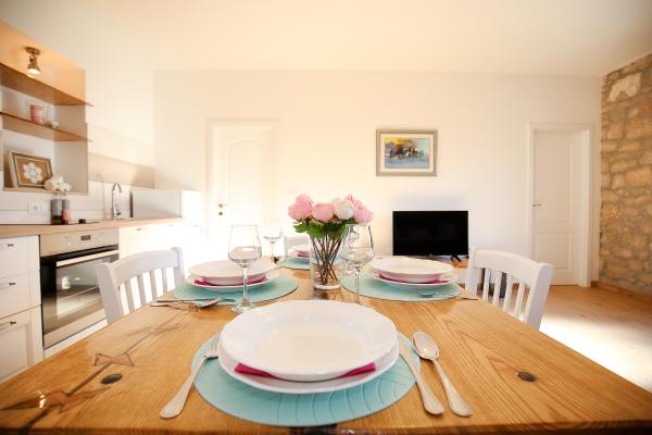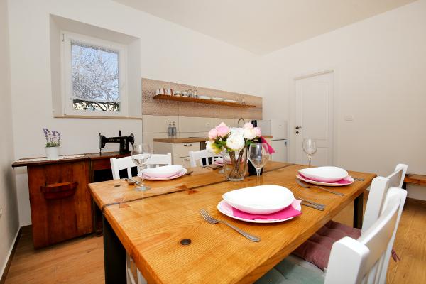 Los apartamentos Marijeta se encuentran en una casa tradicional de piedra dálmata de 120 años de antigüedad, completamente restaurada, en el centro de Ugljan. Los apartamentos tienen un tamaño de 40 metros. Cada apartamento está diseñado para un máximo de 4 personas. Consta de una sala de estar (comedor, cocina, sala de estar), una habitación (cama doble grande de 160x200) y una cabina de ducha en el baño. El exterior está equipado con una mesa grande y los asientos correspondientes en el apartamento Marijeta 1. ubicado en la planta baja de la casa, y una gran terraza amueblada en el apartamento Marijeta 2, ubicado en el primer piso de la casa. Cerca de los apartamentos hay playas, restaurantes, cafés, tiendas, tienda de souvenirs, parque de entretenimiento para niños, oficina de correos, oficina de turismo, centro de salud. La ciudad de Ugljan se encuentra a 20 minutos. ferry o barco desde Zadar con conectividad extraordinaria (más de 30 líneas por día).