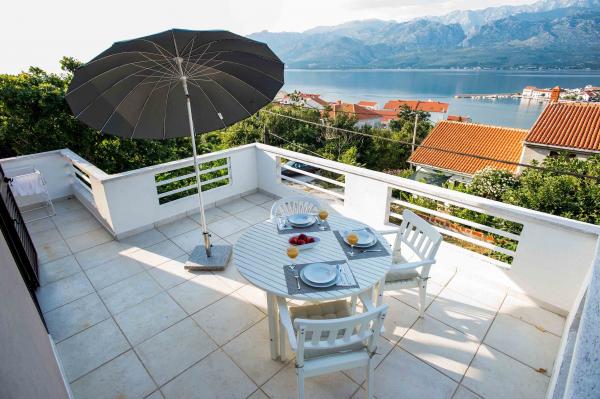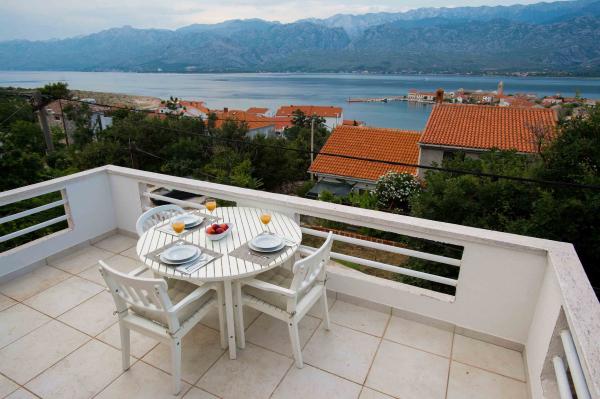 Este año casa restaurada del material para techos y fachadas con aislamiento térmico excelente, está situado en una zona tranquila Vinjerca, rodeado de vegetación, situado a unos 100 m del mar. El apartamento está en el primer piso. Desde la amplia terraza, hay una hermosa vista de la ciudad, el puerto, el mar. La vista se extiende varios kilómetros hacia el este y el oeste, en gran parte del Canal de Velebit, y por supuesto la montaña Velebit muy. El apartamento tiene una gran sala de estar dentro de la cual es una parte de la zona de comedor y cocina totalmente equipada. La habitación tiene una cámara de televisión con una serie de canales locales y vía satélite, amplio sofá, que es una cama supletoria para una tercera persona. En el dormitorio hay una gran cama doble 180 x 200 cm, armario, espejo grande, pequeño aparador. En un pequeño cuarto de baño con un inodoro es todo lo que necesita. Toda la casa dispone de conexión Wi-Fi a Internet. Además de o en las proximidades de la casa de un aparcamiento. Los aficionados al deporte pueden en carreteras cercanas a montar en bici, montaña, con un salto de puente, puenting y el climing libre Paklenici-.