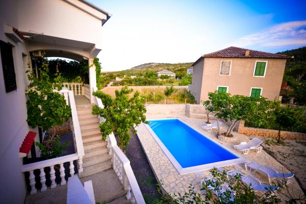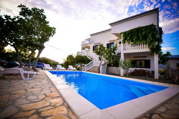 La casa es de fecha reciente, con un gran patio recientemente reformado y plaza de aparcamiento, que consta de 6 apartamentos completamente amueblados con vista hermosa y despejada del Velebit y el Canal de Velebit. Una piscina de lujo está situado en el patio, así como una gran parrilla que está disponible para todos los huéspedes. Un lugar ideal si usted realmente quiere alejarse de las multitudes de la ciudad, mientras que es muy cerca de la misma que la cantidad de parques nacionales y parques naturales (Kornati, Paklenica, Krka, los lagos de Plitvice). Cerca de varias playas en tan sólo unos minutos a pie y el centro para que pueda olvidarse del coche. Para cualquier consulta amables anfitriones están siempre disponibles. Con gran orgullo, que también trae una gran responsabilidad que nos gusta tener en cuenta que más del 70% de los huéspedes regresen a nuestros apartamentos. Enviar solicitud y reserve sus vacaciones ideales tan pronto como sea posible. Le deseamos una estancia agradable y te vemos!