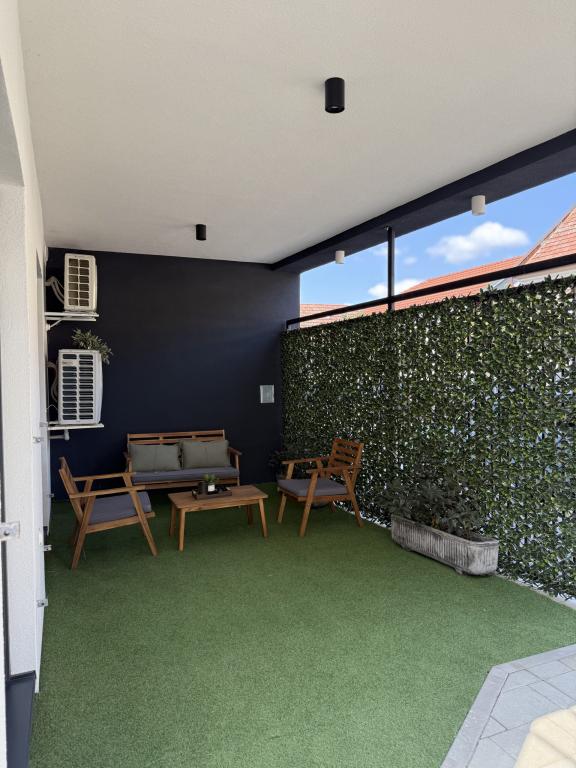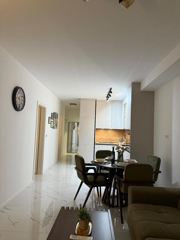 Bienvenido al Apartamento Dukat, un moderno apartamento en un edificio nuevo ubicado en pleno centro de Vinkovci. Este espacio elegantemente decorado en la planta baja (sin escaleras) es ideal para familias, parejas o viajeros de negocios. El apartamento cuenta con su propia plaza de aparcamiento en el patio y una amplia terraza (18 m²) para relajarse. Está totalmente equipado para que su estancia sea lo más placentera posible.