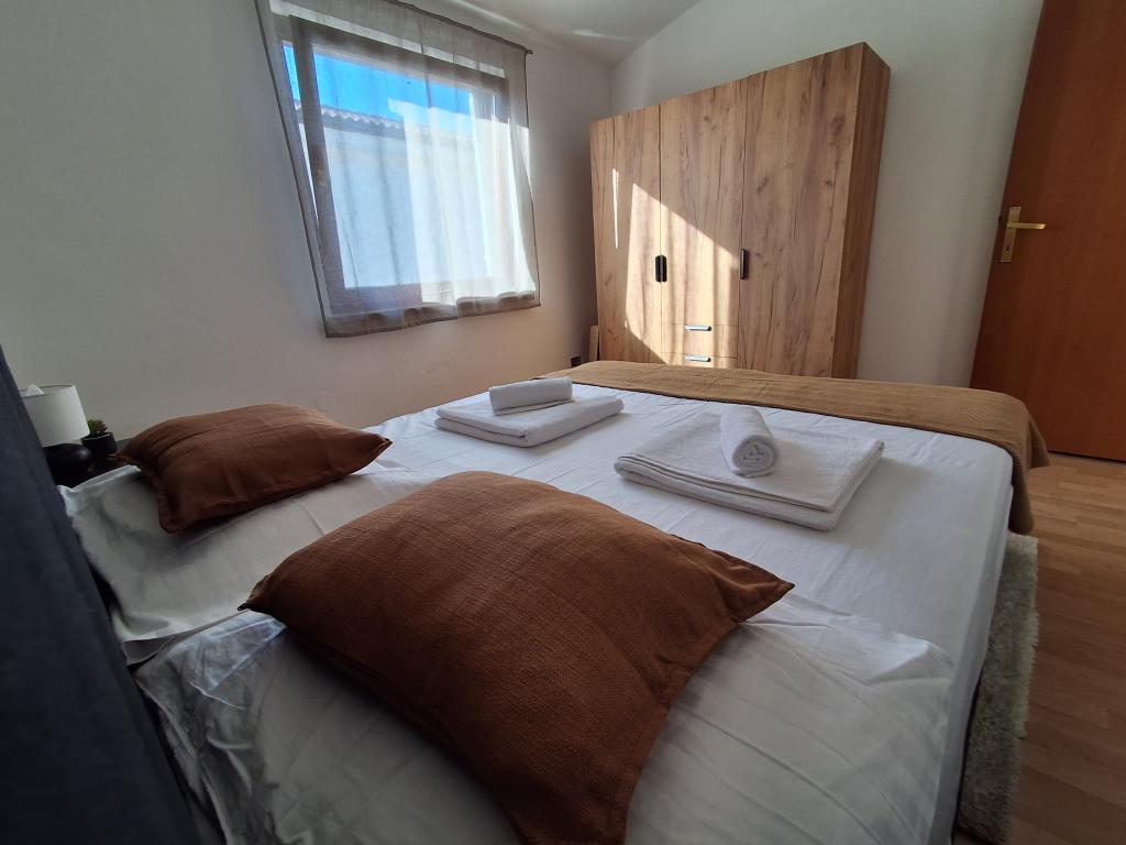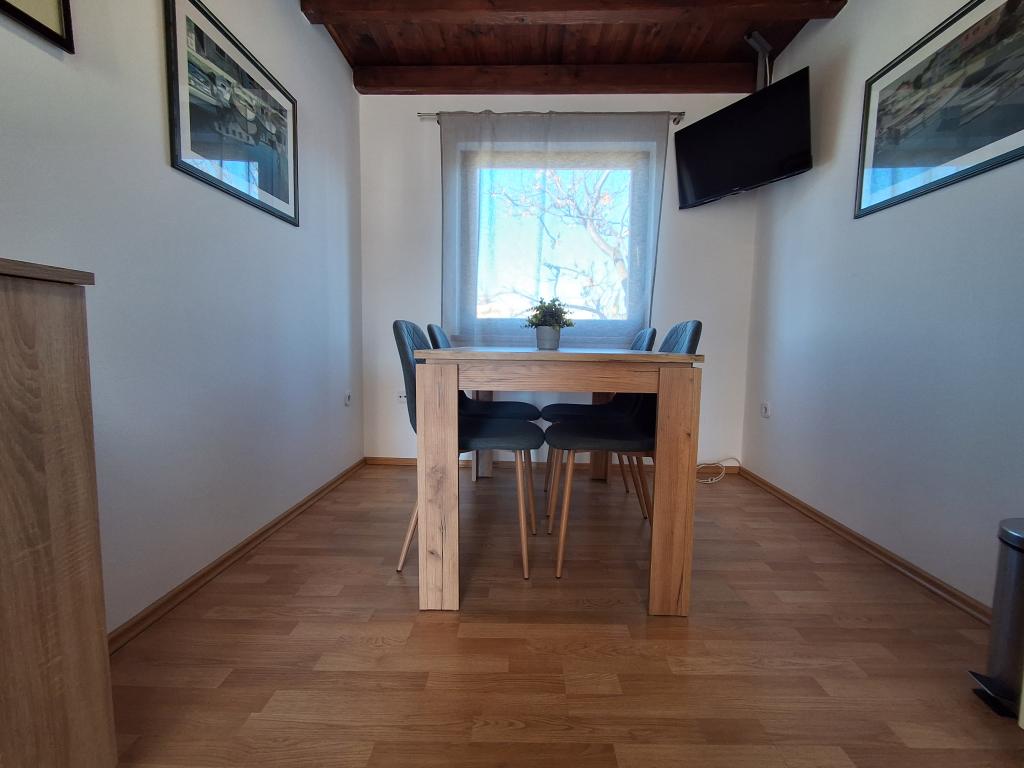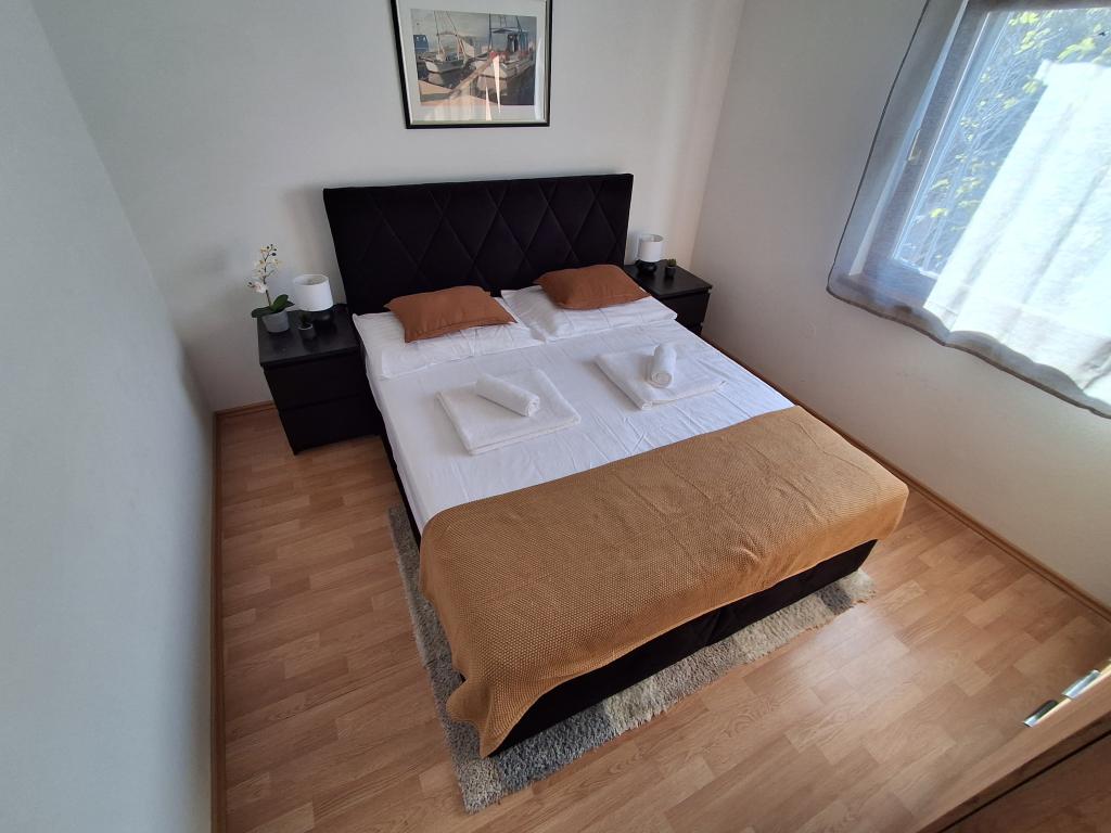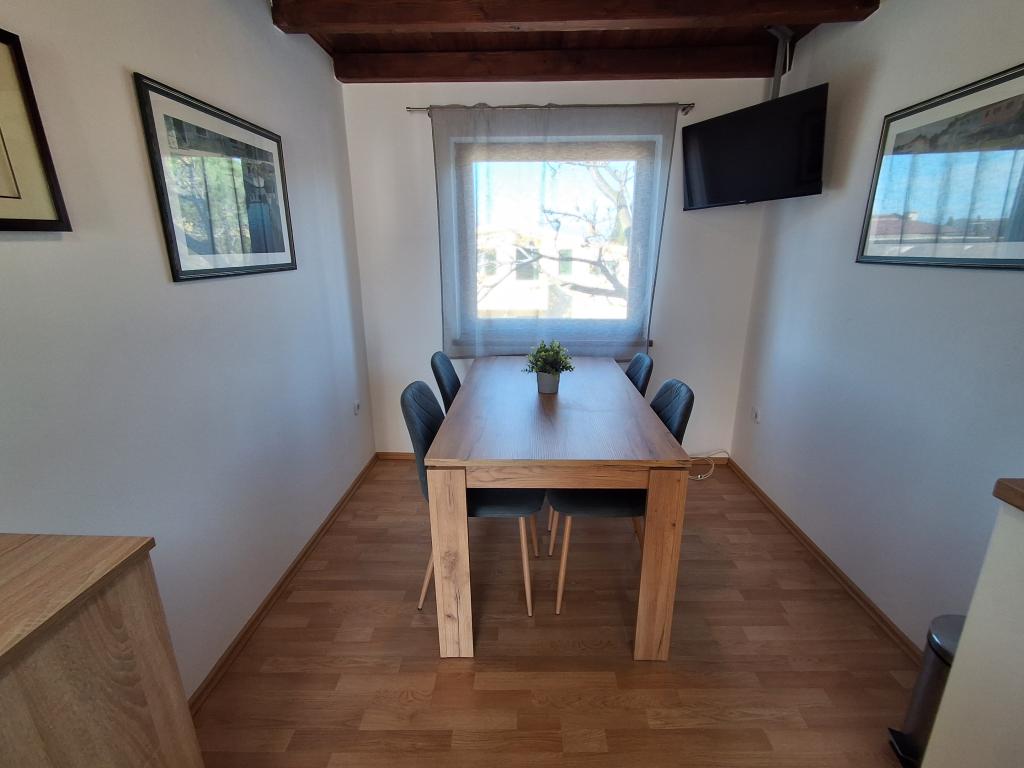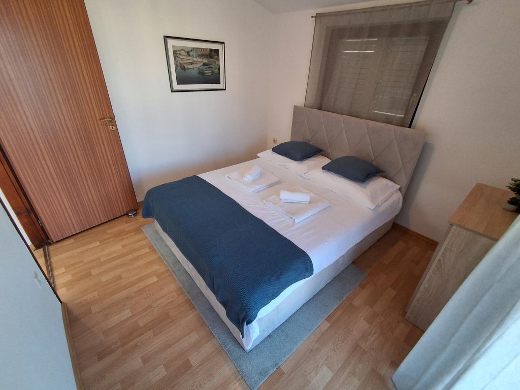 Bonito y moderno apartamento para cuatro personas en la isla de Vir es ideal para vacaciones en familia. Se encuentra a pocos minutos de la playa apta para niños, del centro donde hay un paseo marítimo por la costa, de la oficina de correos, de la iglesia, de la estación de autobuses que se encuentra en las inmediaciones y de la tienda. El apartamento tiene 50 m2 y tiene una entrada independiente. El precio incluye una plaza de aparcamiento, aire acondicionado en todo el apartamento, barbacoa, ducha de verano situada en el patio. Consta de dos dormitorios, baño con plato de ducha, cocina con comedor y terraza. Se encuentra en una zona tranquila de la isla de Vir, pero todo está al alcance de la mano, perfecto para unas vacaciones ideales.