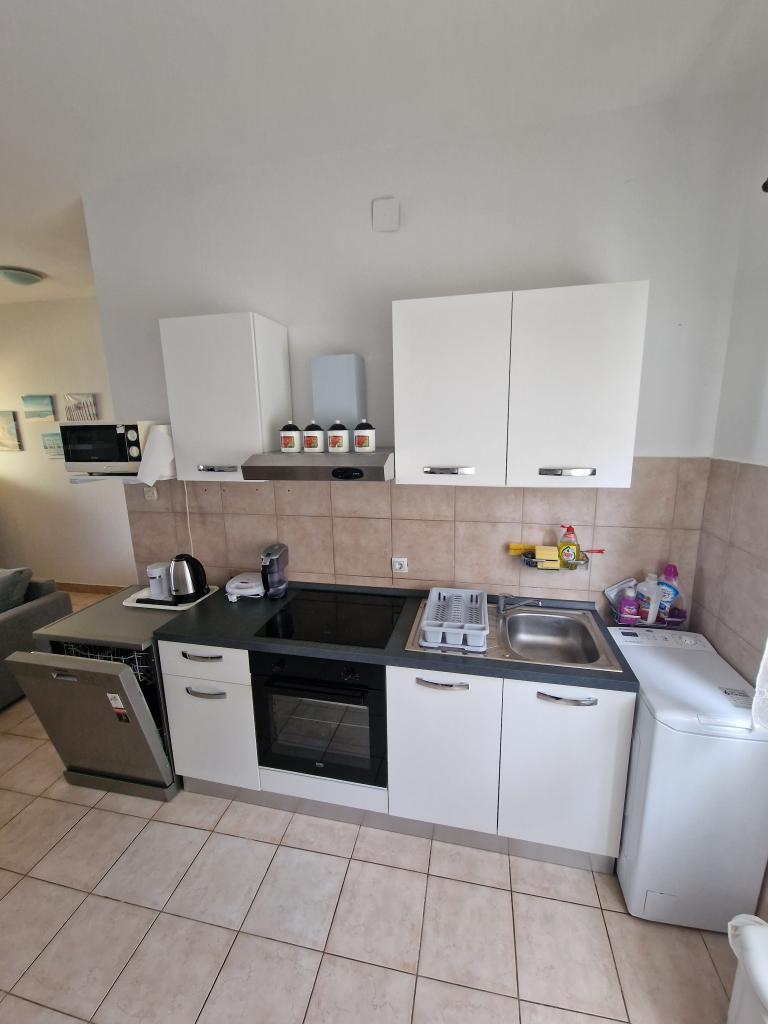 Apartamento totalmente equipado en una zona tranquila de la isla, que hasta ahora se utilizaba exclusivamente para las necesidades de la familia del propietario. Consta de 2 dormitorios (cama doble y dos camas separadas que se pueden juntar en una doble), cocina, comedor, sala de estar con TV enorme, baño/ducha, logia. Las playas más cercanas están a 10 minutos a pie, la tienda está a 5 minutos y el centro está a 3 km, donde hay cafeterías, discotecas, restaurantes y tiendas más grandes. La calle hacia el patio no está transitada y es ideal para los niños, de los cuales puede haber bastantes en la calle. El estacionamiento está en el patio.