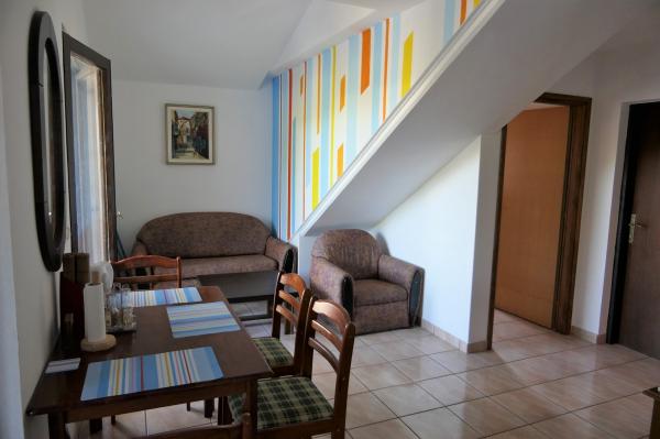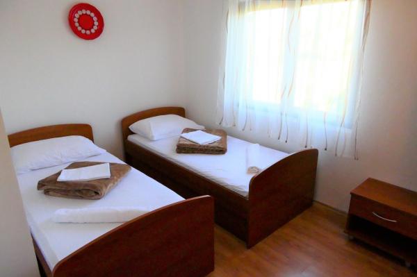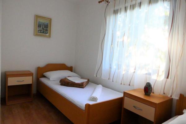Estamos ubicados en la zona Radovanjica a unos 300 metros de la playa en la bahía Radovanjica. Estamos en condiciones de ofrecer apartamentos en alquiler en una zona separada de 30m2 y una terraza de 9m2. El apartamento es de nueva construcción y recientemente equipada: una cama extra doble, baño, cocina, TV, aire acondicionado. También tenemos un gran apartamento de 70m2 terraza de 10m2. El apartamento tiene una entrada independiente y consta de una sala de estar común relacionado con la cocina, baño y terraza, y tres dormitorios que se pueden alquilar y de forma independiente.