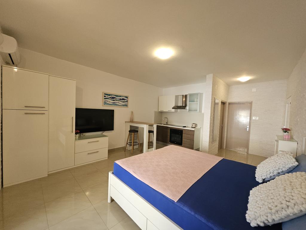 Mis amigos y yo pasamos dos semanas en los tres apartamentos, que estaban limpios y decorados con buen gusto. El patio está muy bien diseñado y es grande. Muy cerca de la playa, pero la limpieza del agua deja mucho que desear. A pocas playas de distancia el agua es cristalina, por lo que recomiendo ir un poco más lejos y disfrutar de la claridad del agua. Buena selección de restaurantes y tiendas. Los propios propietarios resultaron ser personas muy agradables que siempre estaban dispuestas a ayudar. Recomiendo 100% los apartamentos DeLuxe. Saludos a Ivana y Daniel