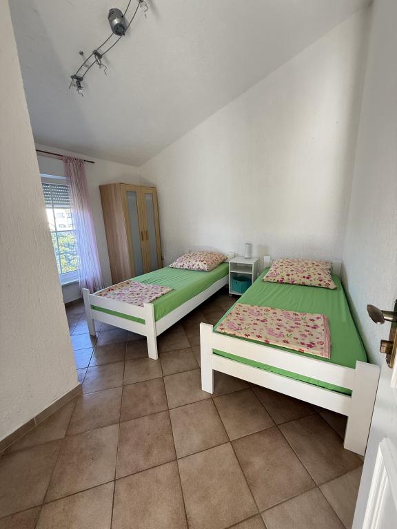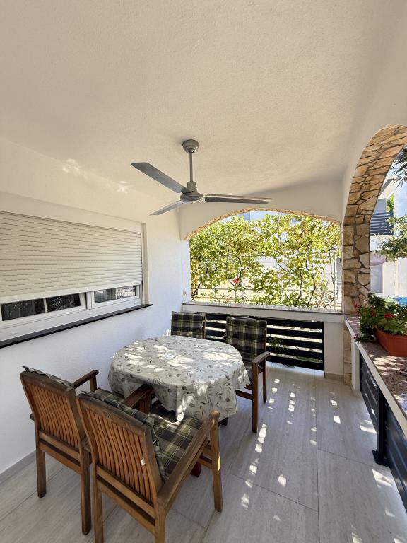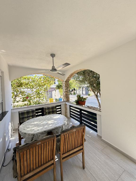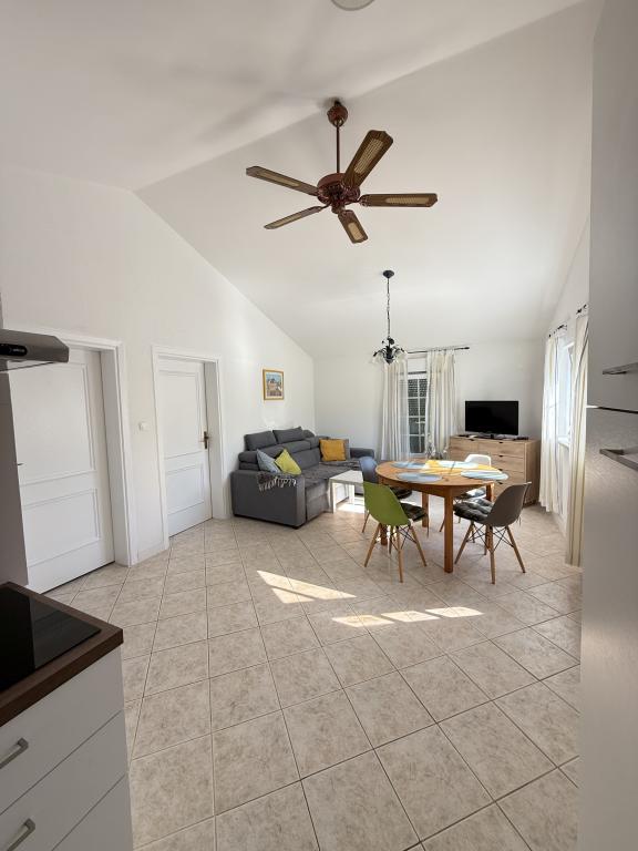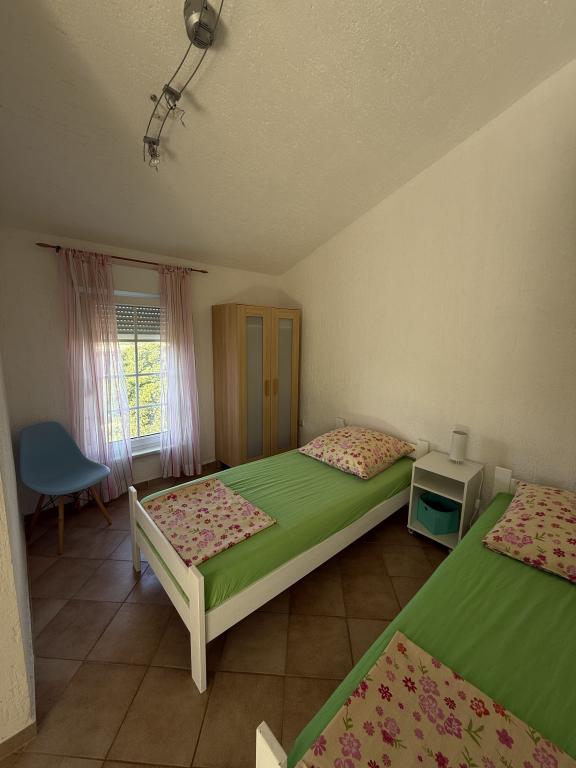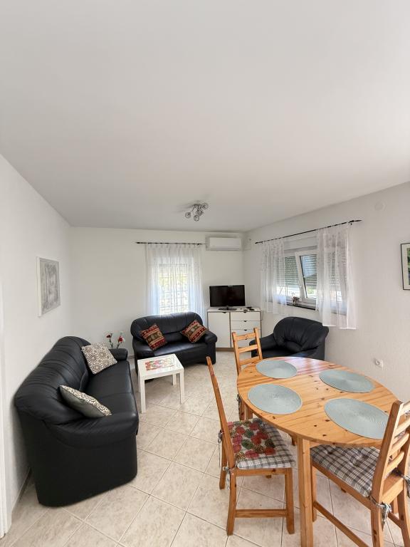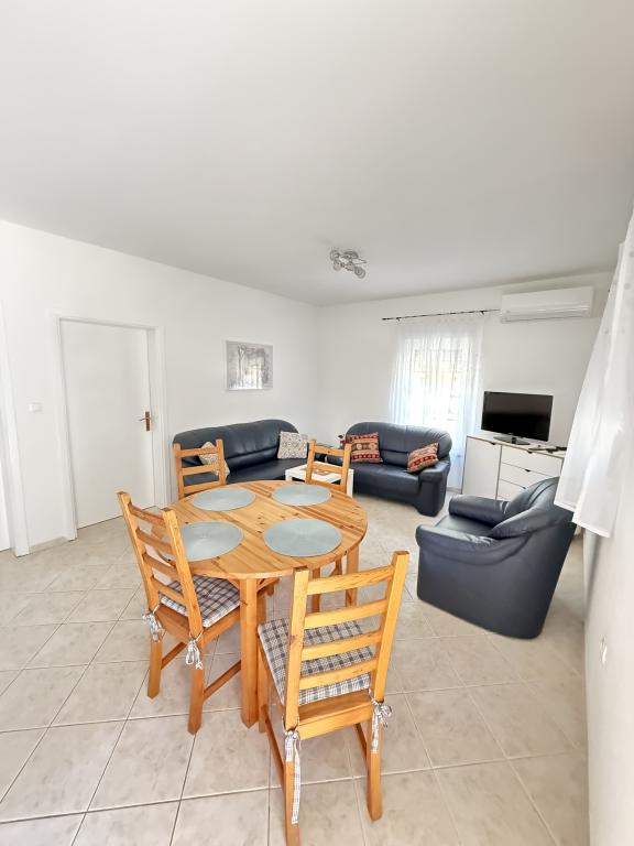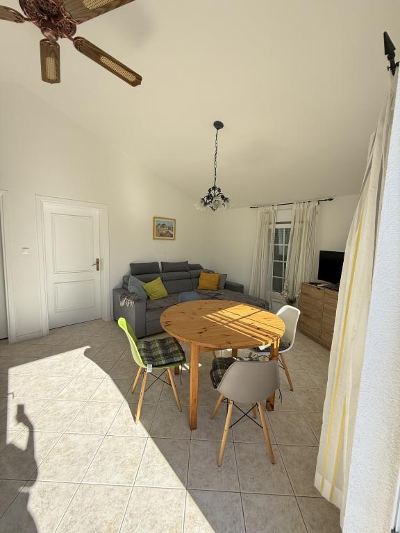 En la isla de Vir, a solo 150 metros del mar, hay dos apartamentos con capacidad para hasta 5 personas. Los apartamentos están modernamente equipados, con aire acondicionado y adaptados para una estancia confortable. Cada apartamento cuenta con su propia terraza con zona de estar, y en el patio vallado, los huéspedes tienen acceso a aparcamiento privado y barbacoa. La proximidad del mar y la playa, junto con las prácticas comodidades, hacen de estos apartamentos una opción ideal para familias y pequeños grupos de amigos que buscan alojamiento cerca de todos los servicios principales. Los apartamentos tienen capacidad para hasta 5 personas. Constan de dos dormitorios, baño con ducha y lavadora, y cocina totalmente equipada conectada al salón. Para relajarse y disfrutar del aire libre, también hay una terraza con zona de estar. Los apartamentos tienen aire acondicionado y una decoración moderna, ideales para unas vacaciones en familia o para una estancia con un grupo más pequeño de amigos.