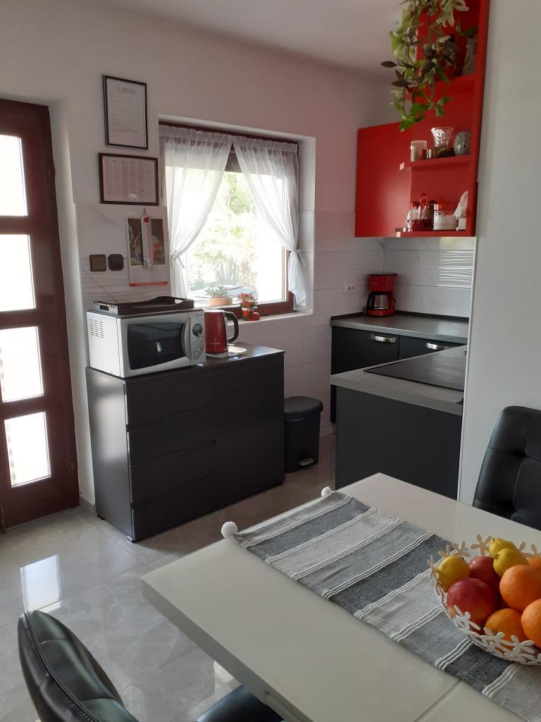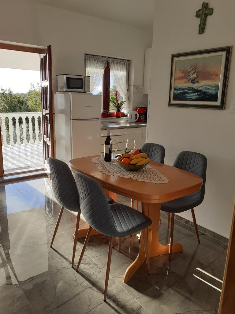 Los apartamentos están ubicados en la isla de Vir, que está conectada por un puente, en el lado sur de la isla ya 200 m de la playa con un bosque de pinos y una cafetería. Los apartamentos están reformados y amueblados de forma moderna. Cuentan con lavadoras y lavavajillas, estufa, horno, microondas, tetera, cafetera, secadora de cabello, TV satelital, WIFI, parrilla y estacionamiento en el patio. Amplias terrazas, y el apartamento superior de dos dormitorios también tiene vista al mar.