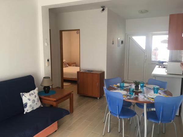 Apartments Nono he colocado en el centro de la ciudad, a 150 metros de la hermosa playa de guijarros y arena Jadro. En la zona hay tiendas, mercado, mercado de pescado, la iglesia, farmacia, oficina de correos, restaurantes, cafeterías y punto de partida para la línea de costa barcos de excursión en las aguas de Zadar. La posición del apartamento es ideal para un paseo por la playa y explorar la ciudad sin coche. Modernos apartamentos satisfarán sus necesidades de comodidad y vacaciones sin preocupaciones. Para una estancia agradable a su disposición una barbacoa, mirador y aparcamiento cubierto. Los apartamentos, recientemente reformados, están equipadas con aire acondicionado, TV vía satélite, nevera, microondas, tostadora, radio y muebles modernos.