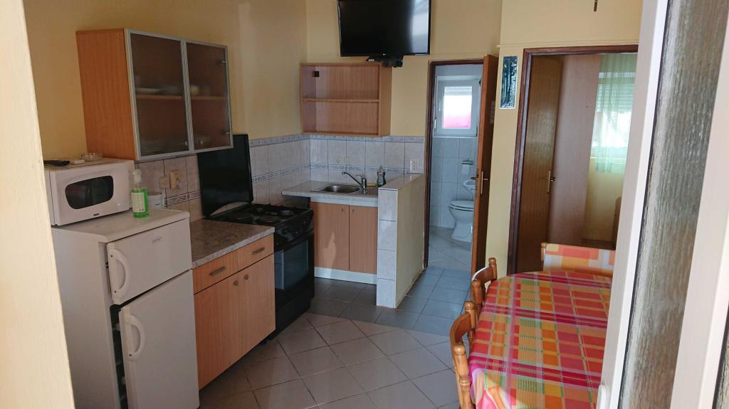 Los apartamentos están limpios, ordenados, con aire acondicionado. Lo único que nos molestó fue que estaban arreglando el camino frente a la casa. (Los trabajadores de Vir Road tienen la culpa de esto) y no los dueños de las casas. Excelente ubicación, justo al lado de la playa. Agua tibia, viento ligero todo el día, calma por la noche. Panadería y tienda está cerca, 2 bares con comida, bebidas, helados, máquinas tragamonedas. Lo único que hay en el piso de arriba es la mala señal de wi-fi. Volveremos y recomendaremos el 100% de los apartamentos a amigos.