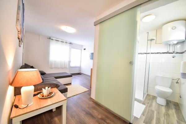 Situado a sólo 5 minutos a pie de la playa más cercana ya 10 minutos del centro de la ciudad, los apartamentos Spavalica son el lugar perfecto para disfrutar de unas vacaciones tranquilas y relajantes. Apartamentos Spavalica hacer un complejo de apartamentos único con el restaurante de pescado Konoba kod Spavalice. El restaurante está decorado con numerosos elementos que se han utilizado en la isla a través de la historia y ofrece platos caseros preparados por recetas tradicionales por lo que ofrecemos a nuestros huéspedes una oportunidad única para conocer la cultura y las costumbres de la isla. Con el fin de garantizar aún más comodidad, hemos renovado la terraza de la azotea nuestros huéspedes pueden utilizar ilimitadamente y disfrutar de la vista sobre Velebit y la isla de Pag. Otro beneficio es un amplio aparcamiento donde nuestros huéspedes pueden aparcar sus coches descuidadamente sin cargo adicional.