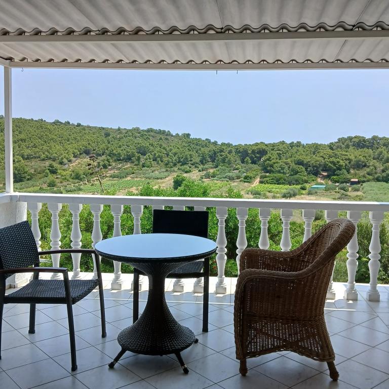La casa en la que solo hay dos apartamentos, frente a la casa hay un estacionamiento para 2 autos, mientras que alrededor de la casa hay un gran jardín con asientos, el centro de la ciudad está a 8 km, la casa está ubicada en el lado sur de la isla de Podstražje...
