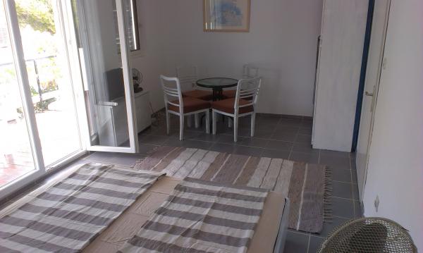 Apartmens muñeca Casa de 2 pisos, primer appartmant una habitación con cama doble, baño, cocina, balcón, segundo appartmant 2 dormitorios, primera habitación con una cama doble + uno extra, segunda habitación con 2 camas individuales, baños, cocina, 2 balcones. Fuera del jardín objeto, un lugar para barbique y comedor, 2 estacionamiento.