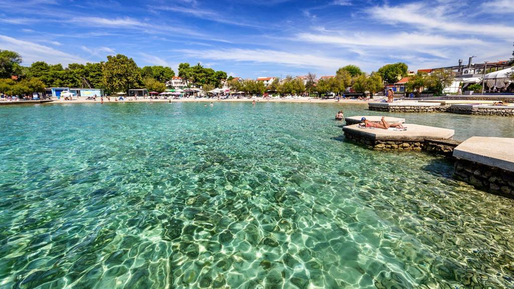 Un espacioso apartamento de tres habitaciones con terraza, un gran balcón y una plaza de aparcamiento privado ocupa todo el primer piso de una casa recientemente renovada en la calle principal en el centro de Vodice. Está perfectamente situado en las inmediaciones del puerto deportivo ACI, entre dos playas de la gran ciudad. A 100 m encontrará el mercado de la ciudad, el mercado de pescado, las tiendas, la oficina de correos, el banco, la panadería, la farmacia, la clínica, las discotecas y muchas cafeterías y restaurantes. El apartamento consta de dos dormitorios con una cama doble grande, un armario corredizo, un escritorio y un televisor inteligente grande, una sala de estar equipada con un sofá cama grande, un armario y un televisor inteligente grande, una cocina totalmente equipada (nevera con profundo congelador, cocina con horno, microondas, lavavajillas, cafetera, hervidor de agua) con comedor, cuarto de baño (lavabo, ducha, lavadora) y WC separado. Todas las habitaciones tienen aire acondicionado. Terraza interna (25m2), amplio balcón frente al mar y barbacoa en el patio.