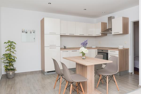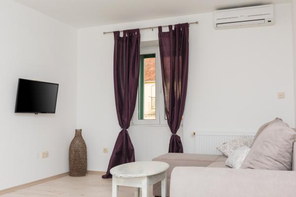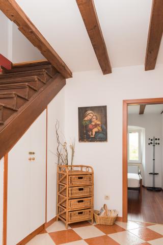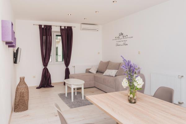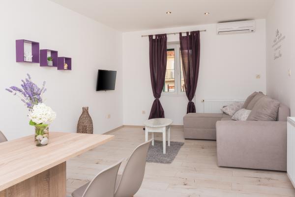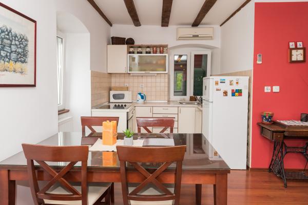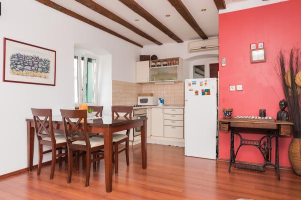 Totalmente amueblado con un estilo rústico casas de piedra indígenas dálmatas, apartamento dúplex en el centro de la ciudad, 100 m de la playa, con plaza de aparcamiento privado.