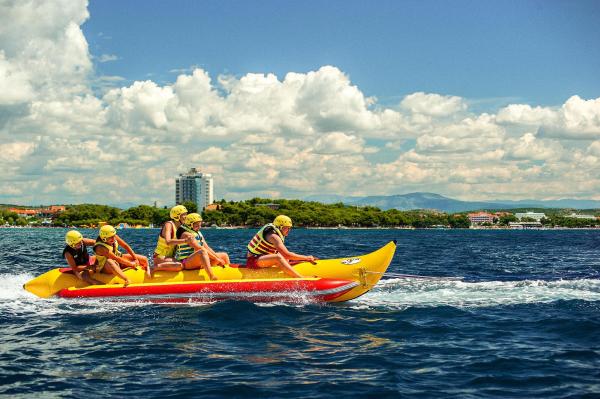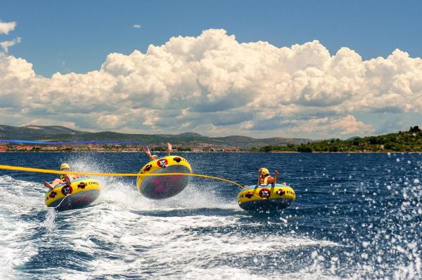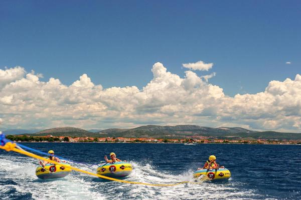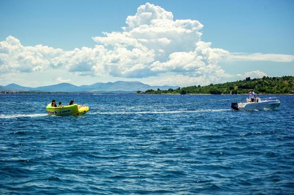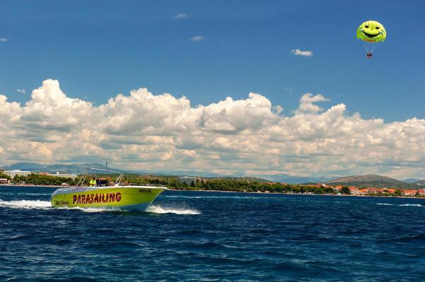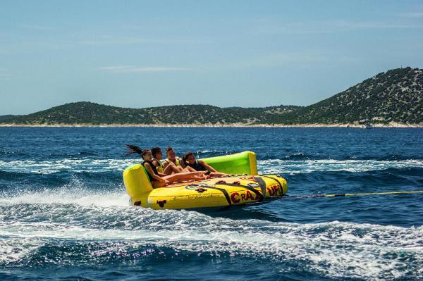 Tasa turistica está incluida en el precio.Familia se ocupa de los servicios de transporte, furgonetas de alquiler, barcos, motos, plátano, tubos y motos acuáticas en la playa frente al Hotel Punta y Dalmatino. Los detalles se pueden ver en nuestra página web: www.obrt-zlatnacipelica.hr o en YouTube: Shark chorro de agua de esquí, jet ski y banana tiburón Vodice Croacia. Puede usar la bicicleta, así como la organización de una safaris jet ski, paseos a parques nacionales de Krka y Kornati, visitar la Catedral medieval de Sibenik, Museo de la Ciudad, y Fort ... Discos Hacienda (guía) y Aurora (Primosten) son ideales para aquellos que deseen noche diversión.