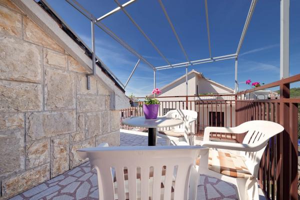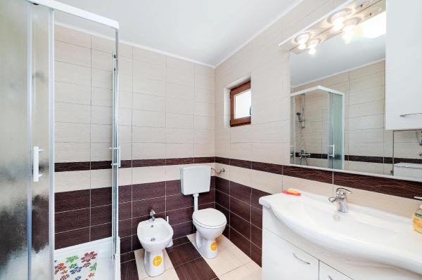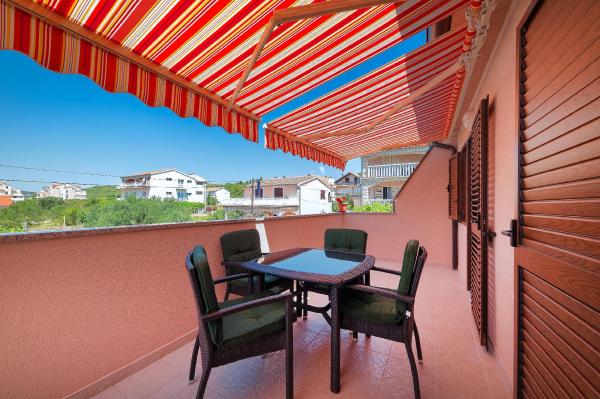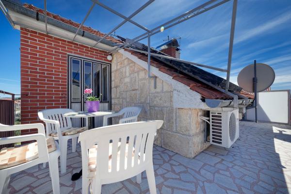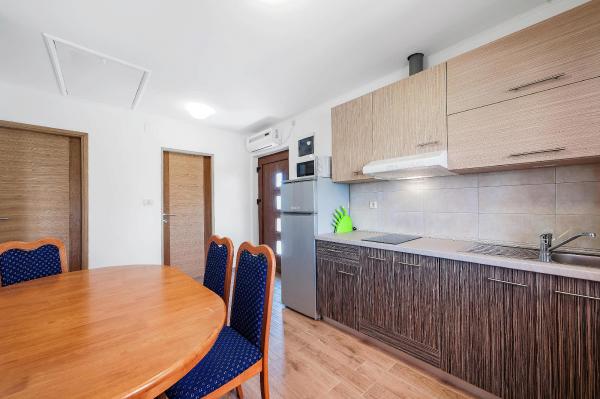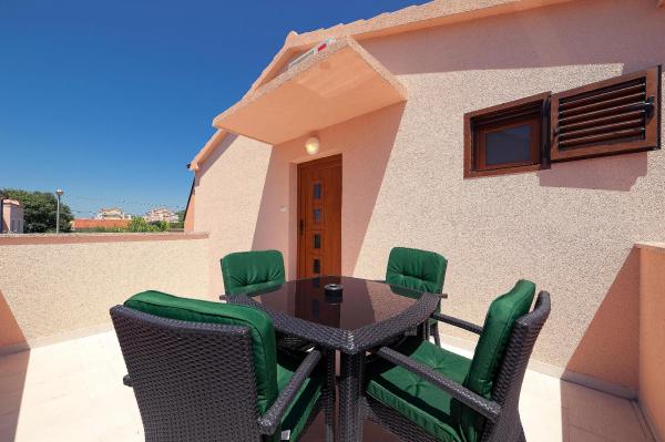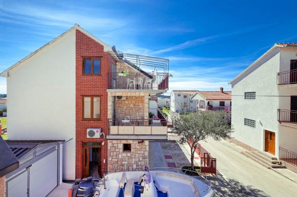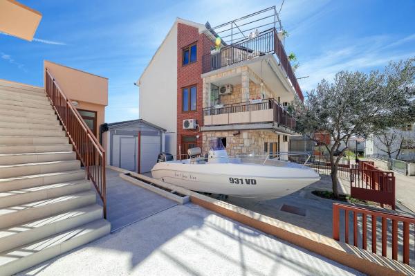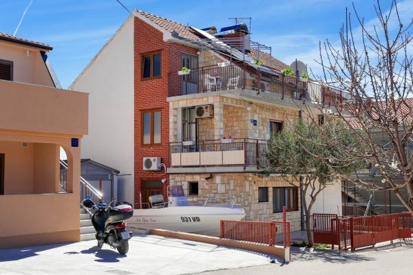 Totalmente equipados y modernos apartamentos en una zona tranquila de Vodice, situado a 300 metros del mar. La instalación está ubicada a 5 minutos andando de la playa y Punta ya 15 minutos del centro de Vodice. La playa es el parque acuático más grande del Adriático, es adecuado para niños y adultos. Ofrecemos alojamiento de calidad en nuevos, totalmente equipados y modernos apartamentos. El apartamento en el primer piso (2 +2) Tamaño de 48 m2 consta de un dormitorio, cuarto de baño con ducha, cocina, comedor, salón con sofá cama, dos terrazas con vistas al mar, receptor de TV satélite / por dos LCD, aire acondicionado, conexión Wi-Fi vivir Internet y aparcamiento. Larger planta baja apartamento de 4 +2 70m2 consta de dos dormitorios, cuarto de baño con ducha, cocina, comedor, sala de estar con sofá cama, dos grandes terrazas, tres receptores LCD TV / satélite, aire acondicionado, Wi-Fi gratuito a Internet y dos de aparcamiento lugares.