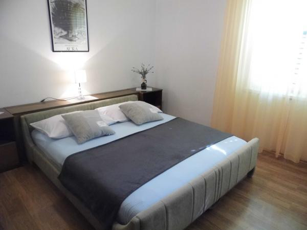 Cuatro apartamentos PLMS nudu un día de fiesta agradable y fácil en una zona tranquila de la ciudad. Los apartamentos están situados a sólo 7 minutos a pie del centro de la ciudad por lo que lo que el ruido de la famosa vida noconog no le importe, pero de nuevo le estar lo suficientemente cerca para llegar rápidamente a ella. Con parrilla accesible diaria puede ser servido en la mesa en el patio de la vivienda y objedoati los sonidos de los grillos del olivar vecino y la brisa agradable.