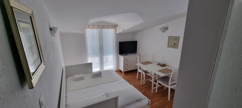 Excelente alojamiento, condiciones adicionales, incluso para personas muy exigentes. Las habitaciones son muy limpias (se limpian todos los días), bien equipado con muebles nuevos. La ubicación es muy buena, todo está cerca. La tienda más cercana está a 2 minutos. caminar. Las habitaciones tienen balcones con vistas al mar, así que vienen comidas preparadas que se consumen fuera en un paisaje casi paradisíaco. El anfitrión - Milán - loable, muy amable y siempre disponible. Przesympatyczny y hombre muy bondadoso, gracias a él, nos golpean los lugares que no se encuentran en ninguna de las guías turísticas ... Su receta de camarones - campeonato del mundo! Yo no estaba aquí una vez, pero sin duda la última. Hermoso lugar con la atmósfera, lo que puedo recomendar con seguridad a cualquiera y estoy seguro de que podrá disfrutar ...