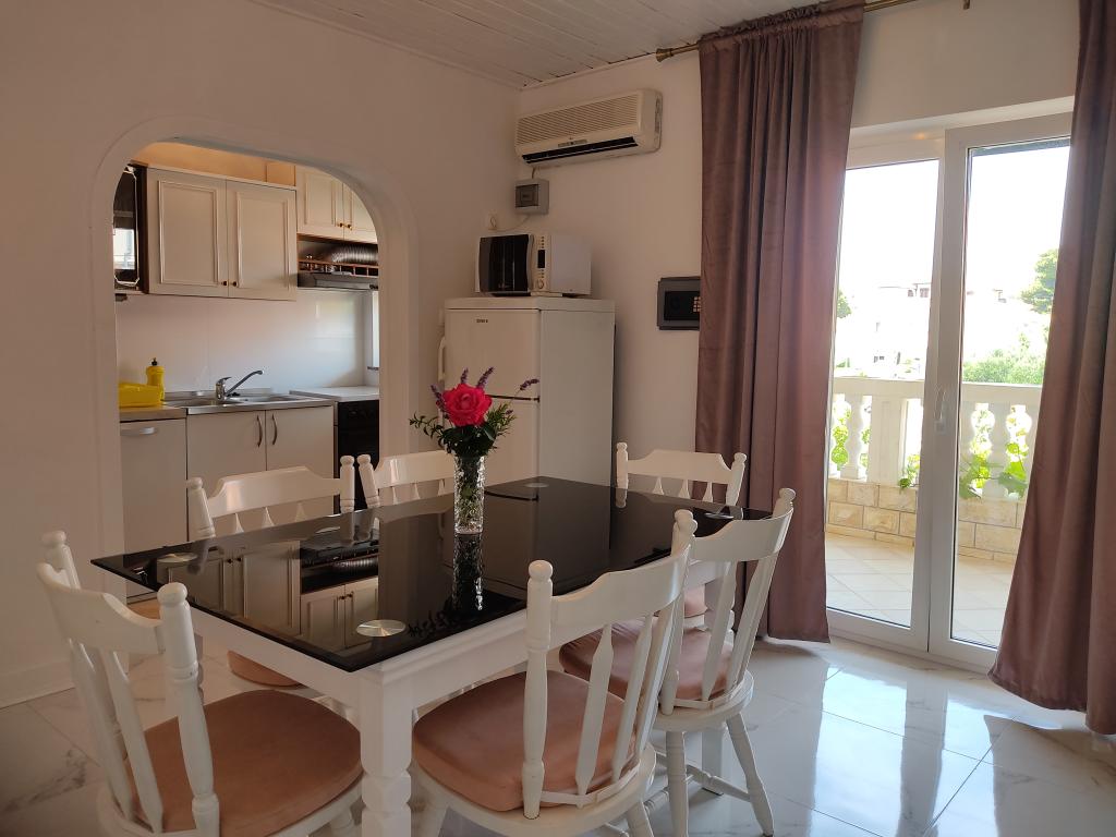 Nuestros apartamentos están situados en una calle tranquila, a sólo 2-3 minutos andando de la playa con bandera azul, y cinco minutos a pie del centro de la ciudad con todo tipo de tiendas, restaurantes, bancos, farmacia, oficina de correos, etc. Gracias a la excelente ubicación apartamentos son muy adecuados para las familias con niños pequeños. Todos nuestros apartamentos son confortables y cuentan con balcón o terraza, aire acondicionado, conexión a internet de alta velocidad y televisión por satélite. En frente de la casa, en una terraza cubierta de las vides de uva, hay una barbacoa de piedra y está disponible para todos los huéspedes. En el patio delante de la casa es una zona de aparcamiento reservado para su coche. El precio del apartamento depende de la duración y el periodo de la estancia. También ofrecemos descuentos para largas estancias.