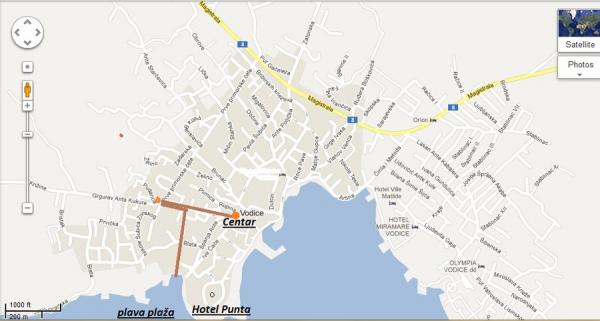 Apartamentos totalmente equipados con terraza, vista al mar y entrada independiente. . Consisten en; sala de estar con sofá cama (140/200 cm), cocina, dormitorio (cama 160-200), baño y pasillo. Aire acondicionado, lavadora (en un área separada), parrilla eléctrica, TV satelital e internet Wi-Fi. Aparcamiento vigilado, tienda de comestibles en la planta baja. Jardín en frente de la casa. Los apartamentos se encuentran a 300 m del centro ya 400 m de la playa. Pebble Blue Beach no lejos del hotel Punta y que recibió una bandera azul. La playa tiene un kilómetro de largo y los senderos son de piedra plana, concreto, pasto o cubiertos con mosaicos. Hay varias duchas y un baño público. Gran parte de la playa está cubierta de pinos y tamaris, hay varios servicios de cafetería-bar a la sombra natural. Vodice tiene una rica tradición turística y una variedad de ofertas y hay 2 parques nacionales cerca