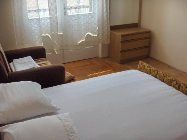 Amplio apartamento con cuatro dormitorios, una cocina, dos baños y un gran salón comedor, 110m2 de tamaño, y tres habitaciones con baño, decoradas con gusto, un ambiente agradable en el centro de uno de los destinos turísticos más populares de la costa adriática. Estamos muy cerca a pie por tres minutos, playas azules, playas con bandera azul como señal de una aguas extremadamente claras y símbolos playa atractiva y el centro de la ciudad pero en un día de fiesta tranquilo, agradable y relajante. Dentro de las instalaciones para todos los huéspedes un aparcamiento en el patio son ugodnan zona de estar y parrilla. Todo está listo para descansar y pasar agradables.