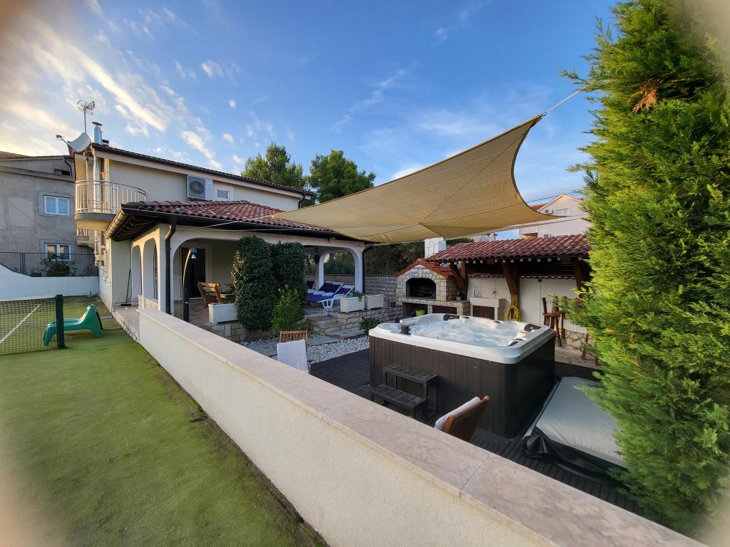 ¡Toda la casa sólo para ti! ¡Paraíso para familias! ¡Bienvenido a Villa Melosa! Cómoda casa de vacaciones en Vodice con pista de tenis privada. La casa puede albergar hasta 10 huéspedes. Dispone de 5 habitaciones, 3 baños, cocina, salón y una amplia terraza donde poder relajarse y disfrutar de barbacoas y jacuzzi exterior para 5 personas. La casa tiene aire acondicionado. La propiedad dispone de 3 plazas de aparcamiento disponibles, dos de ellas con plaza de garaje cubierta. Toda la propiedad está vallada, por lo que puede estar seguro de que los niños no saldrán a la calle y podrán jugar sin preocupaciones en el espacioso patio.