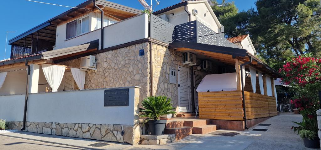 Nuestra casa está ubicada al comienzo de la península en un asentamiento llamado Zaglav, por lo que el mar está en dos lados, es decir, la primera bahía ya está a una distancia de 100 m, mientras que en el otro lado está un poco más distante ( unos 500 metros). La casa consta de seis apartamentos de diferentes tamaños (para 2-4 personas), cada apartamento tiene su propio baño, cocina y terraza. Delante de la casa hay un aparcamiento sólo para los huéspedes de nuestra casa. Los huéspedes pueden utilizar la parrilla al aire libre (eléctrica). La distancia de la casa desde el centro de Vrboska, es decir, hasta la tienda y la oficina de correos, es de unos 900 m. La carretera hacia el centro y la playa principal de la ciudad de Soline pasa por la muy costa. La distancia desde la parada de autobús es de 900 m y la distancia desde el puerto de ferry es de 10 km (casco antiguo). La distancia desde la farmacia y la clínica es de 6 km (Jelsa) y allí hay un servicio médico de urgencia. La distancia desde la gasolinera es de 5 Km. Abastecimiento de agua: suministro de agua local. Tipo de playa: arena, roca, grava, piedras mayores y losas de hormigón. Acceso con vehículos privados a la instalación: bueno.