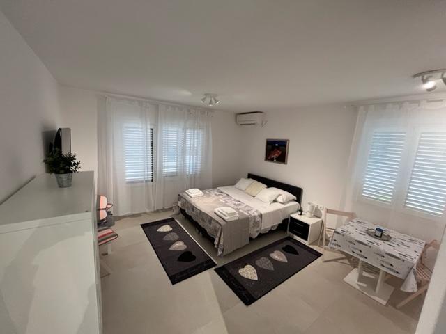 Los apartamentos constan de dos unidades de alojamiento separadas con una superficie de 40 m2 y 33 m2 en el primer piso de una casa independiente con jardín, ubicada en la hermosa ciudad dálmata de Vrboska en la isla de Hvar, que también se llama Little Venecia. La casa está a unos 200 metros del centro del pueblo, donde hay tiendas, restaurantes, correos, etc., así como del mar. Ambos apartamentos han sido recientemente renovados, modernos, con aire acondicionado y totalmente equipados, y los huéspedes tienen a su disposición televisión vía satélite, Wi-Fi gratuito y caja fuerte. Ambos apartamentos tienen balcón, el más pequeño tiene una terraza cubierta de 10 m2, mientras que el apartamento más grande tiene una terraza cubierta de 30 m2. Ambos apartamentos tienen la posibilidad de compartir una bonita piscina privada con equipamiento asociado (tumbonas, ducha...). Un estudio para 2 personas consta de terraza, recibidor, baño con WC, salón con cocina y dormitorio, mientras que un apartamento para 4 personas consta de cocina con comedor, recibidor, baño con wc, 2 dormitorios y terrazas