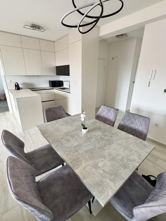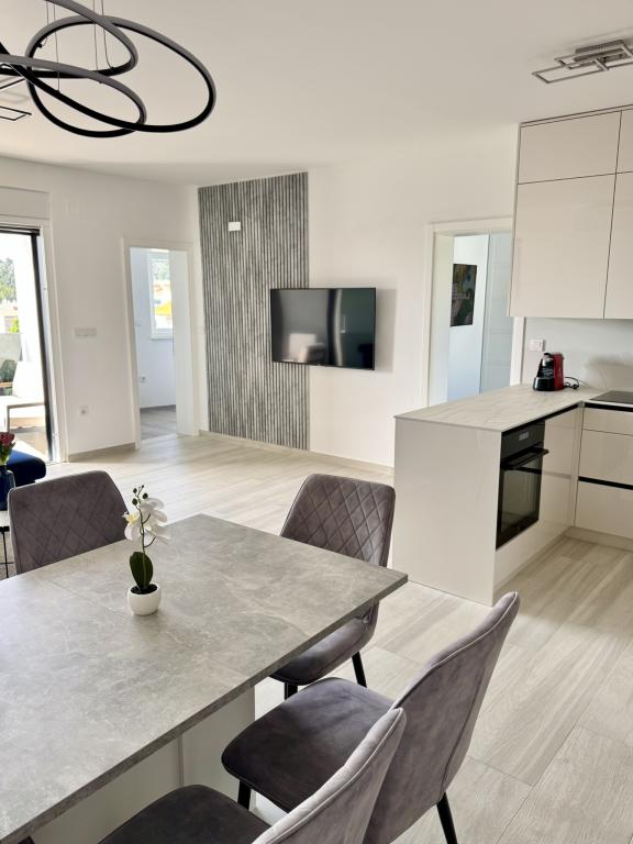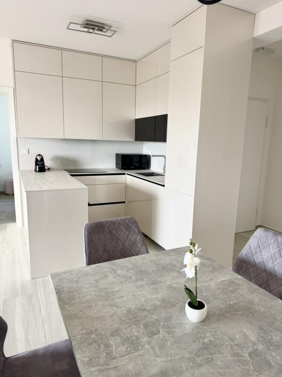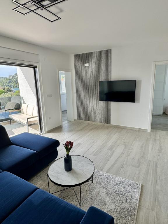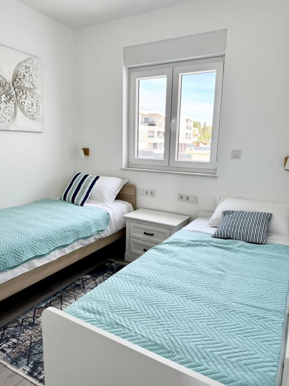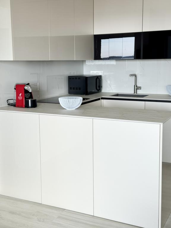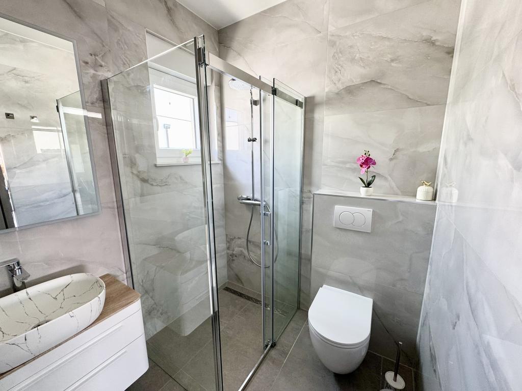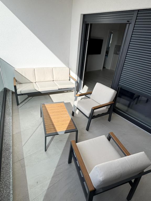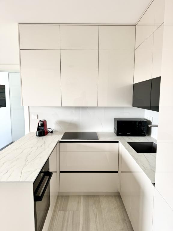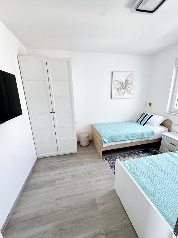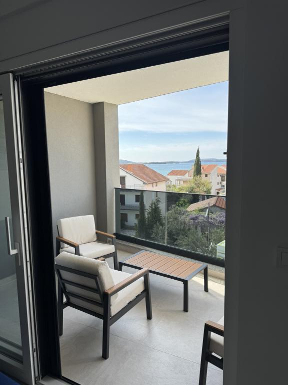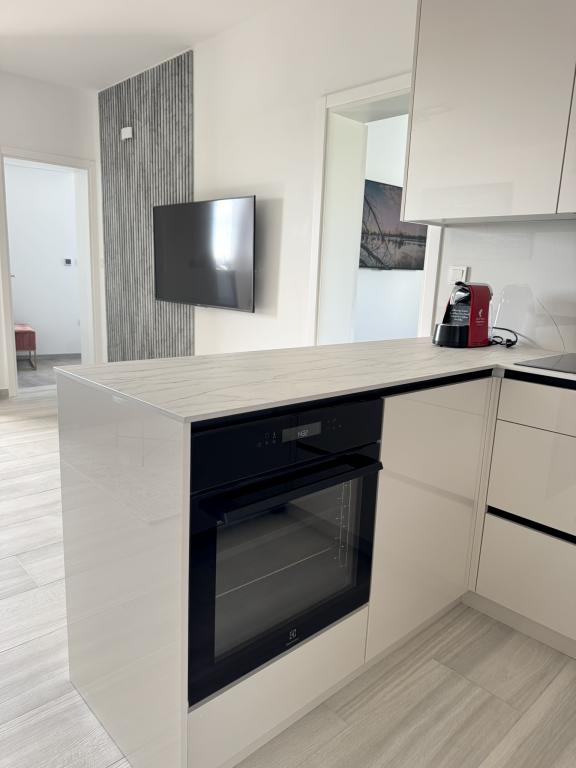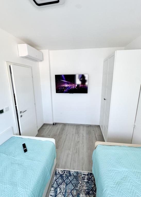 Apartamento moderno a estrenar, 73 m², dos dormitorios, dos baños, todas las habitaciones con aire acondicionado y TV. El único apartamento en la segunda planta con vistas al mar.