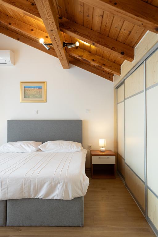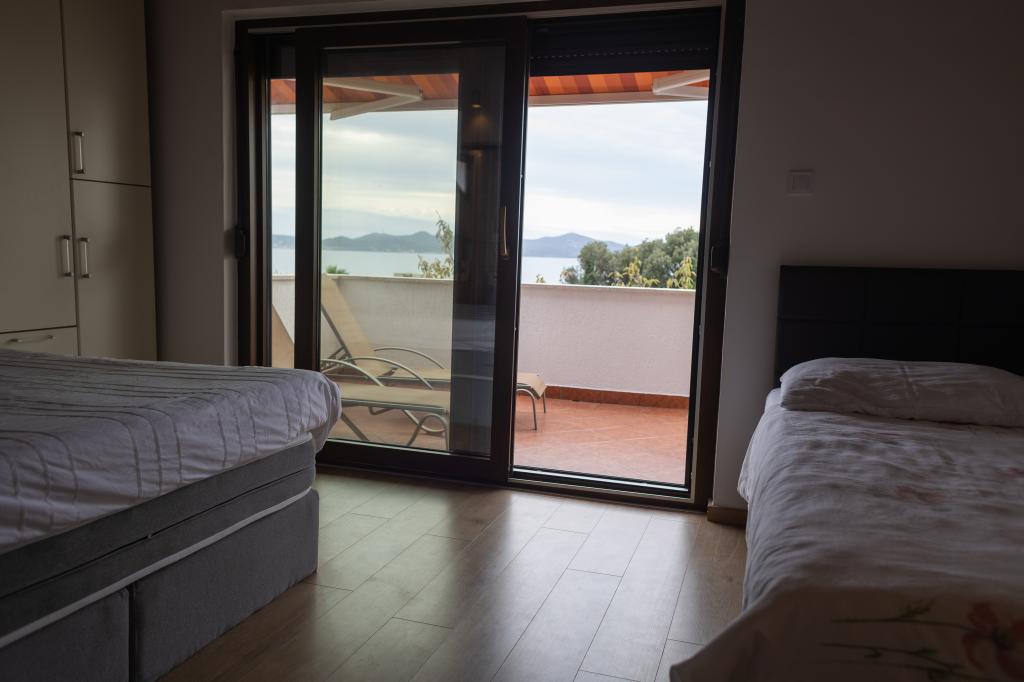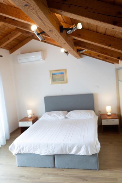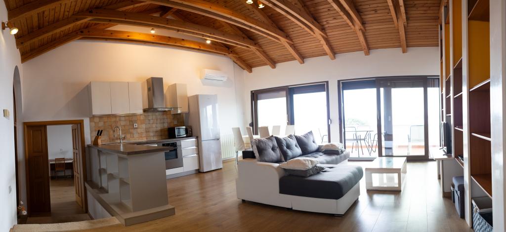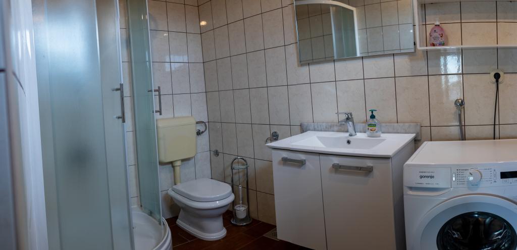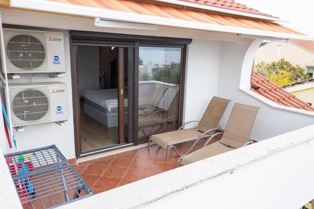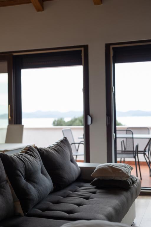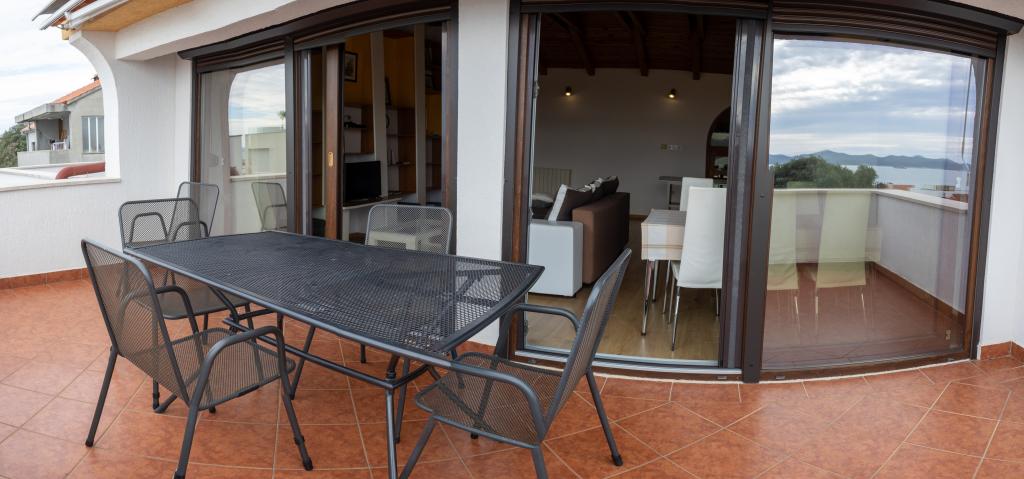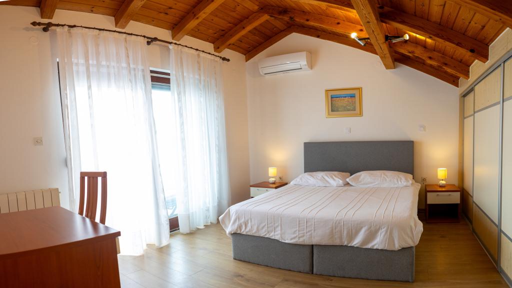 Amplio apartamento de 3 habitaciones (100 m²) en la segunda planta de la casa rústica Anica, ubicada en la tranquila localidad de Diklo, a tan solo 6 km del centro de Zadar y a 150 m del mar. El apartamento está equipado con un moderno salón-comedor (38 m²) con TV vía satélite, aire acondicionado y acceso a una terraza con vistas al mar. Dos cómodas habitaciones ofrecen alojamiento flexible: una con cama de matrimonio y la otra con una cama individual y una de matrimonio, además de baño privado con ducha. Ambas disponen de aire acondicionado y acceso a una terraza. La cocina americana, totalmente equipada, incluye horno, lavavajillas, vitrocerámica, microondas y cafetera. También hay un baño adicional con ducha y lavadora a disposición de los huéspedes. Tres terrazas orientadas al sur, amuebladas, ofrecen magníficas vistas al mar y son el lugar perfecto para relajarse. Los huéspedes tienen acceso a un amplio jardín vallado (1000 m²) con césped, barbacoa, parque infantil con columpio y aparcamiento en la propiedad.