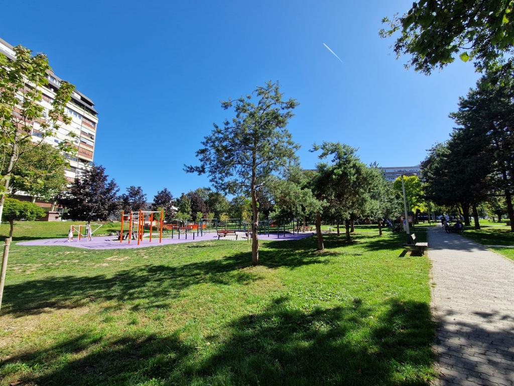 Disfruta con tu familia de este alojamiento moderno, completamente y recién reformado en un apartamento luminoso y confortable cuya ubicación presenta numerosas ventajas. A 10 minutos de todos los destinos de Zagreb, la plaza principal, parques, centro de congresos, salas de conciertos. Mucha vegetación y parques, excelente transporte público, a 15 minutos del aeropuerto, de fácil acceso desde todas las direcciones. El apartamento está ubicado en un edificio en un vecindario tranquilo y familiar con una escuela y parques, un lago, un museo, muchos restaurantes y cafeterías, grandes tiendas y centros comerciales. Hay una buena conexión de transporte entre el asentamiento y el centro de la ciudad, que está a 10 minutos en coche o en transporte público. Barrio muy seguro lleno de niños y jóvenes. El estacionamiento frente al edificio se cobra, y en las inmediaciones (al otro lado de la calle) hay un estacionamiento que se cobra 5 HRK todo el día.
