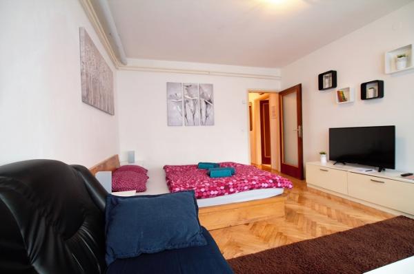 Leer más Unidades de alojamientococina totalmente equipada combinado con comedor tiene todo lo necesario si se queda más días. Los huéspedes pueden utilizar la conexión rápida a Internet (Wi-Fi), ropa limpia y toallas y secador de pelo. Si llega en coche, en frente de la vivienda tiene espacio suficiente para el estacionamiento, que es gratis. Apartamento recomienda encarecidamente a los usuarios de los hospitales en las proximidades de la vivienda. Para estancias más largas, ofrecemos un descuento.
