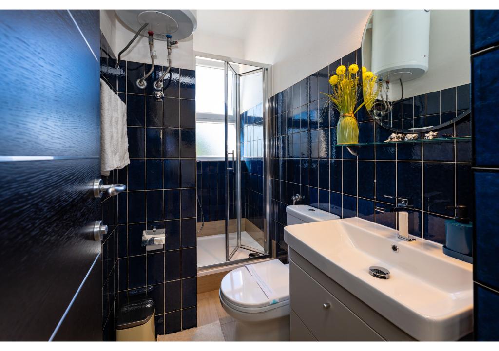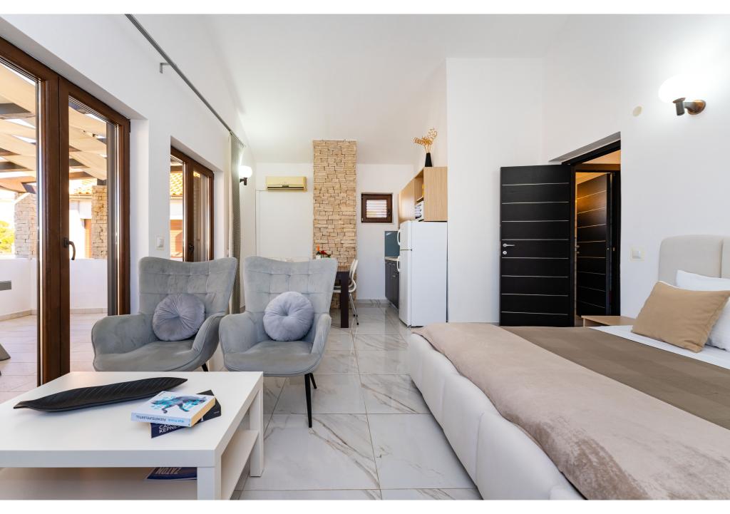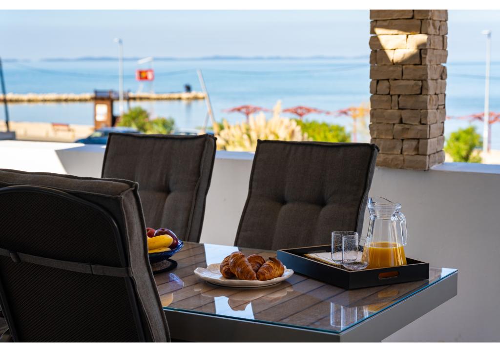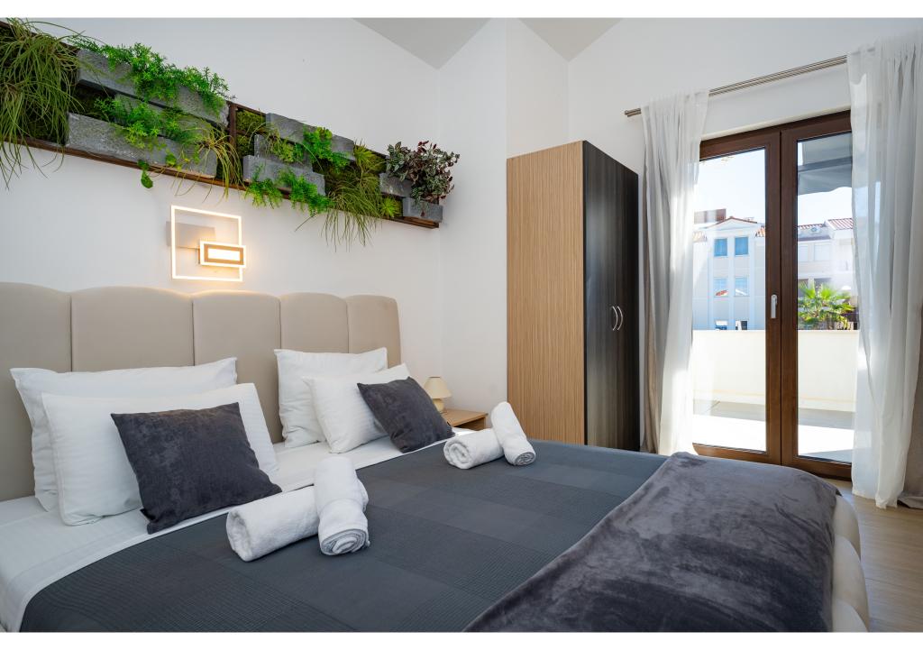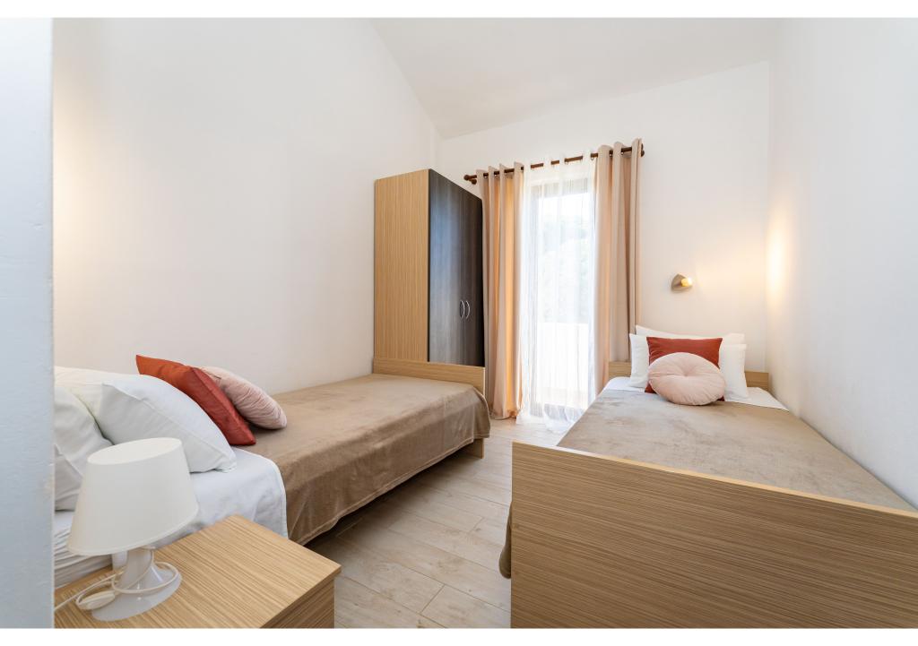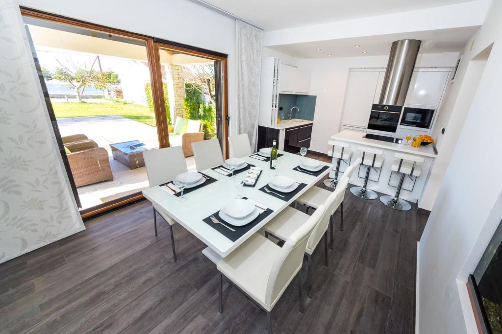 Apartamentos en primera línea de mar. Terraza con vista al mar. La bahía es arenosa y poco profunda. Los apartamentos están cerca del centro turístico de Zaton y están equipados con aire acondicionado, internet, TV vía satélite, aparcamiento, barbacoa, etc.