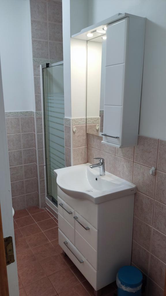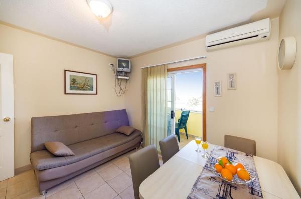 Nos acomodaron en una habitación 2+1. El apartamento estaba limpio y fragante. El mar directamente al otro lado de la carretera. La vista directa al mar y la puesta de sol... lo único que fue un pequeño inconveniente es la falta de espacio de almacenamiento para tres personas, pero se puede manejar. Y el agua era terriblemente difícil de ajustar, ya sea helada o caliente, pero en realidad son solo pequeñas cosas. El dueño fue complaciente. A pedido, también nos dio toallas adicionales sin cargo adicional ni ninguna otra palabra. .También hay un complejo cercano, que ofrece puestos de restaurante, etc. por la noche. realmente recomiendo