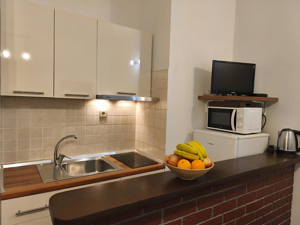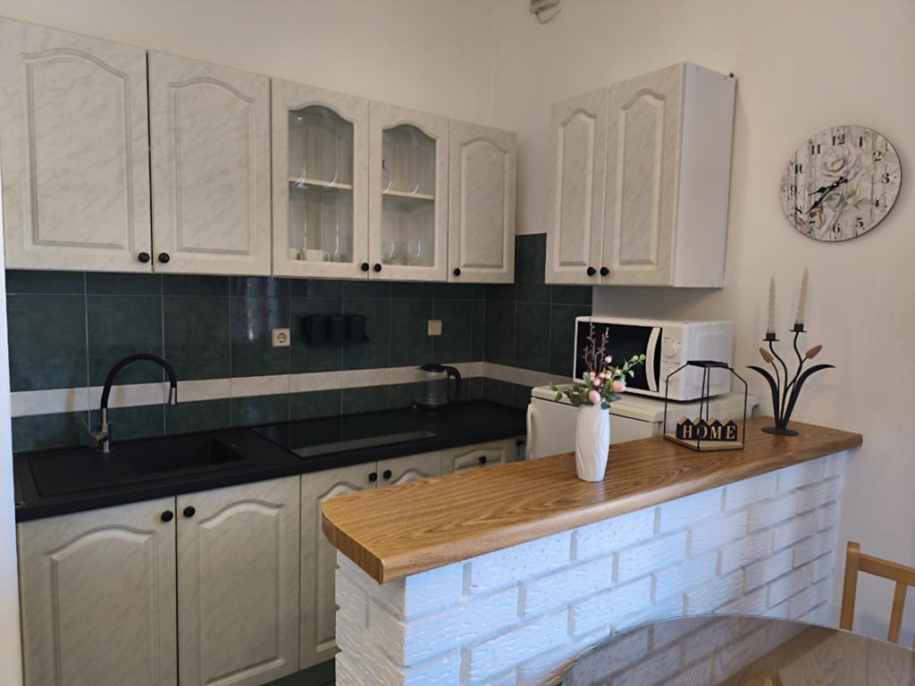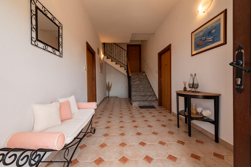 Una cálida bienvenida en el apartamento. En los chocolates de almohada, flores en la mesa. Un regalo a la salida. El propietario de la muy útil, cordial. Los apartamentos estaban muy limpias y bien decoradas. Jardín con muchos árboles frutales y flores, predivno.More muy cerca, parque infantil, cafetería y restaurante también están .Proveli que eran muy cómodas y las vacaciones son inolvidables. Vamos a llegar el próximo año. Recomendación familias con niños.