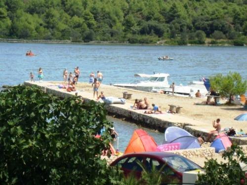 Apartamento de un dormitorio de la familia, ideal para dos adultos y niños de 2-3. Se encuentra cerca del mar, en una tranquila cala Gladuša, en Ždrelac en la isla de Pasman. En la amplia terraza ofrece una vista de toda la bahía y el puerto de la ciudad.
