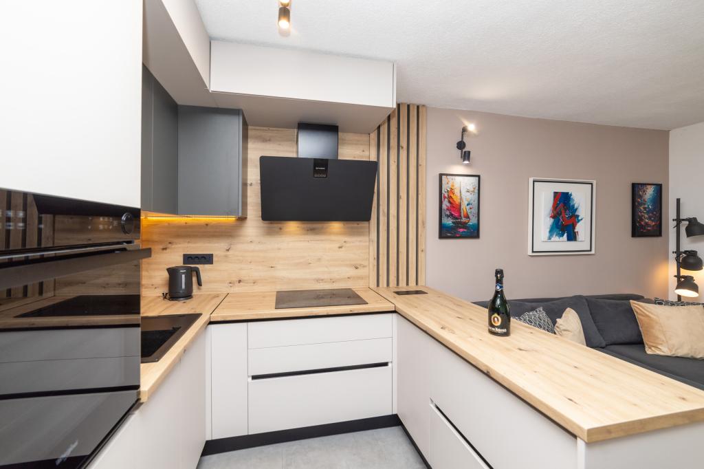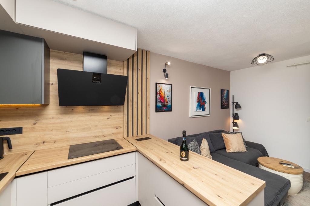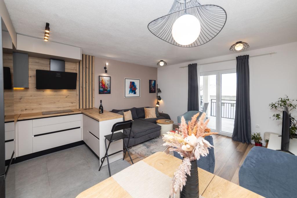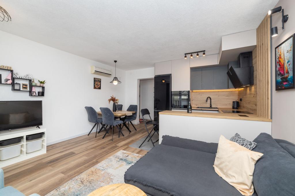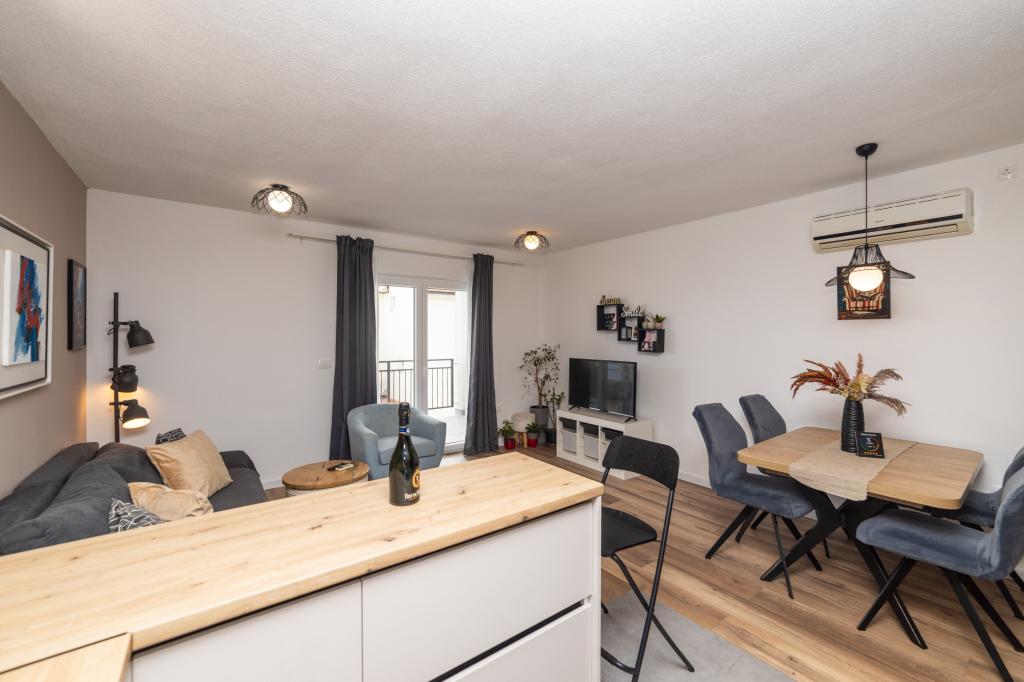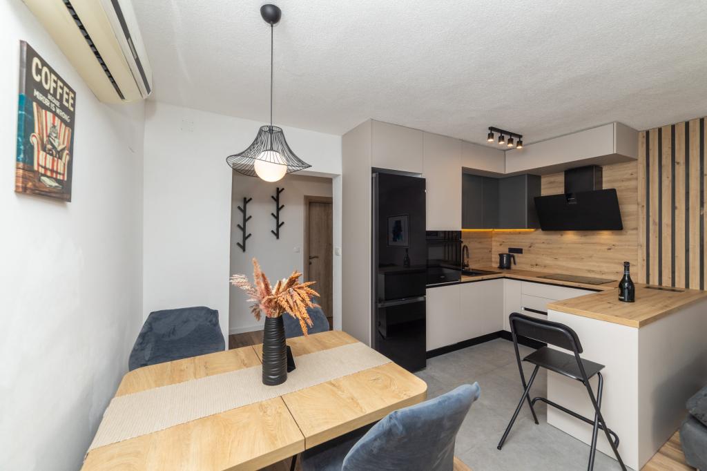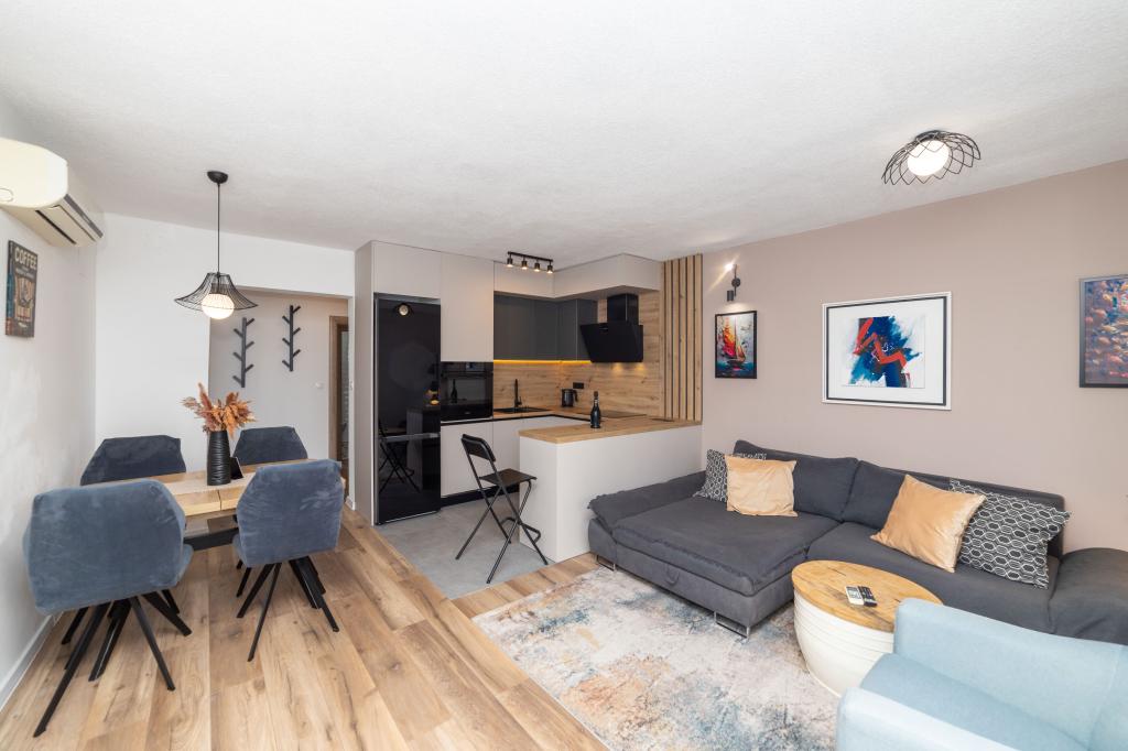 Vivíamos en un apartamento 2+2, habitaciones separadas, cocina americana. Todo limpio y equipamiento en buenas condiciones, sin muebles viejos, etc. El precio es bueno en mi opinión, sin cargos adicionales por aire acondicionado, perro, etc... Vida nocturna solo en la playa, paz total alrededor del apartamento, nosotros nos sorprendió. No vimos mucho a los propietarios, solo la entrega al principio y luego al final, manejamos mucho, disfrutándolo. Las playas de guijarros tienen la ventaja de que el mar es realmente cristalino. Si alguna vez volviera a la zona, sé adónde ir y no creo que buscaría en ningún otro lugar si estuviera disponible. Dado que no existe tal cosa como la perfección, me gustaría hacer una pequeña nota. La sartén en la cocina de inducción fue un poco difícil de calentar, probablemente no fue construida directamente para inducción, pero se podría hacer algo al respecto, solo tomó un poco de tiempo, el resto de los platos estaban bien.