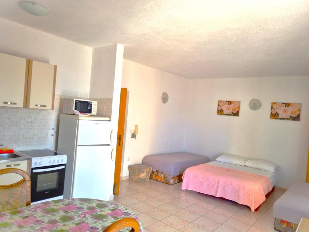 El apartamento donde nos alojamos era excelente, muy limpia y espaciosa. Es interesante que hay dos habitaciones separadas, cada una con un cuarto de baño. El mobiliario es nuevo. Para presumir siempre de buen humor dueña, la señora Kato que trata de sus vacaciones más agradables. El clima es realmente incluido y se puede utilizar como desee. Ella praised'd Sra Almir que se encarga de la limpieza del apartamento. Estas bellas mujeres están siempre a su servicio. La playa es sin duda una de las más bellas playas del Adriático con una gran cantidad de sombra y, lo más importante, sin las multitudes. Animamos a todos, especialmente a las familias con niños porque se siente muy cómodo, como si estuviera en su casa