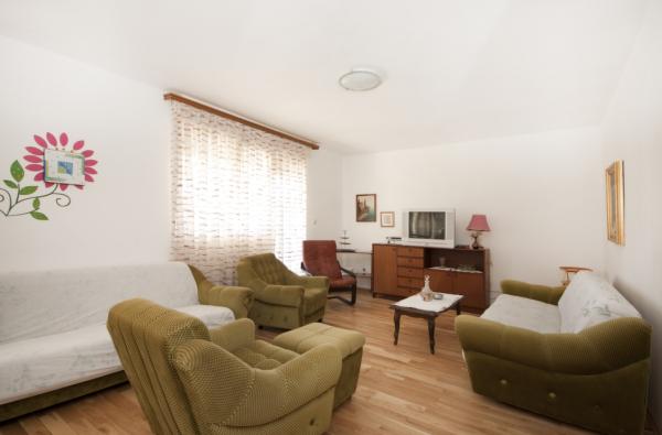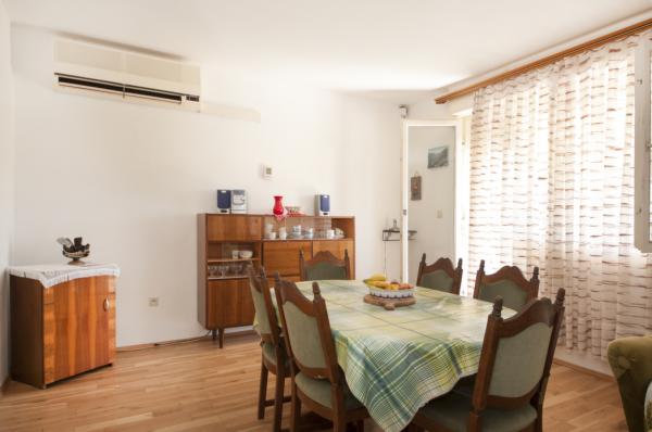 La casa en la isla de Zlarin está situado en un lugar tranquilo, lejos de la playa 150 metros y del centro 400 m. La casa es de dos plantas rodeado de una propiedad de 1000 metros cuadrados en el que los olivos, vides, higos .... En la planta baja es una gran sala de estar, cocina puerta separada de la zona de estar y un pequeño cuarto de baño. La sala de estar es una gran terraza de 35 metros cuadrados de mesa de madera hecho a mano para 7 personas con dos bancos, columpio y muebles de jardín y tumbona. Terraza está cubierta. En la primera planta hay tres dormitorios, un gran cama doble y una cama individual, sala de tamaño medio con una cama doble y una cama individual y una pequeña habitación con una cama individual. Las tres habitaciones tienen acceso a una gran terraza superior con vistas al mar. La planta superior de la casa donde las habitaciones tienen aire acondicionado. WI-FI gratuito. También hay un cuarto de baño con bañera, inodoro y lavabo. En la casa hay una ducha exterior con agua fría y caliente solar.