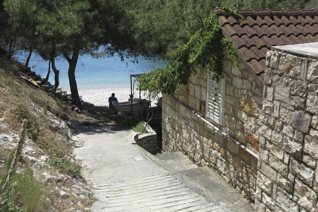 CASA "MAJA" PARA EL DESCANSO DEL ALMA Y EL CUERPO se encuentra en la bahía Bratinja luka, a 8 km por camino de macadán del pueblo Žrnovo, isla KORČULA. El parking se encuentra a 100 metros de la casa. Ofrecemos dos apartamentos, uno para 4 personas (nivel inferior) y el otro superior para 4 1 persona. No hay instalaciones turísticas en la bahía, no hay restaurantes, las tiendas se encuentran a una distancia de 8 a 12 km, excepto una excelente casa rural con comida local a 5 km de la bahía, en el camino a Žrnovo. Debido a la proximidad del mar y la suave playa de guijarros, la casa es especialmente interesante para familias con niños en edad preescolar y para aquellos que buscan soledad y paz en mayo, junio, septiembre y octubre. Dado que ofrecemos un estilo de turismo semi-Robinson, ¡se debe enfatizar la necesidad de ahorrar agua y limitar el consumo de electricidad!