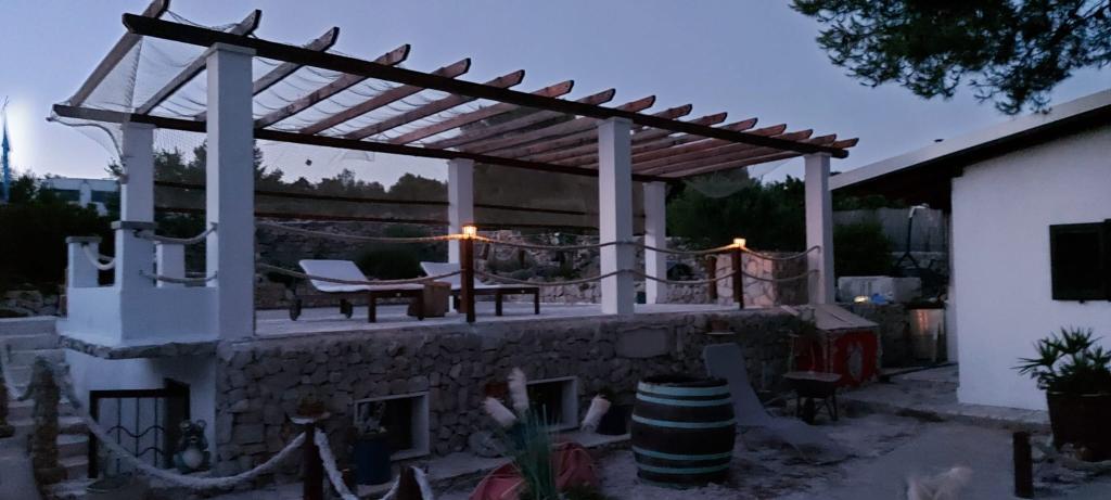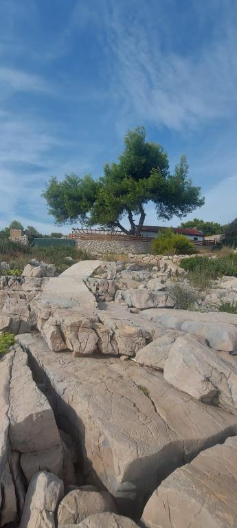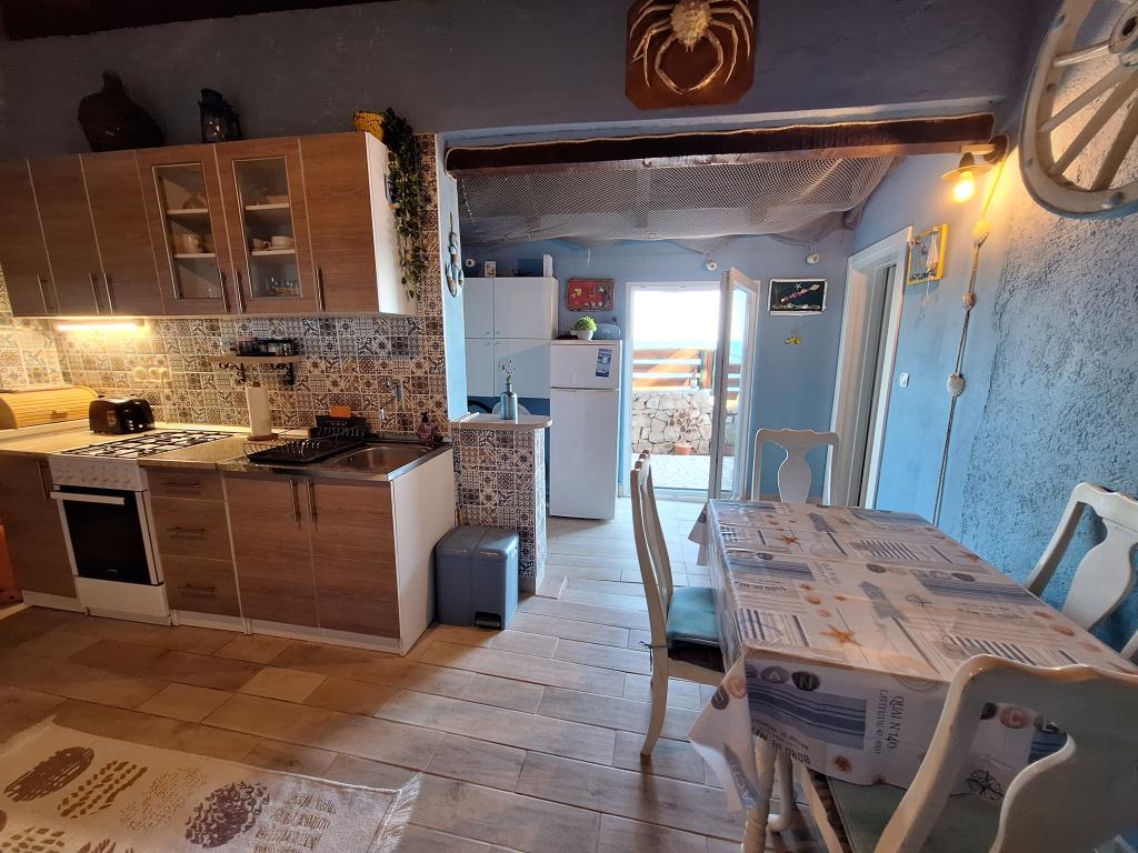 Drvenik Mali es una isla situada a unas 8 millas náuticas de la ciudad de Trogir, con la que está conectada por una línea de ferry (el viaje dura aproximadamente 1 hora y hay tres, es decir, cuatro líneas diarias). Es un típico pueblo pesquero, alejado del estilo de vida ajetreado y estresante, y como tal es ideal para disfrutar de una naturaleza única y un mar cristalino. La instalación está ubicada en el lado sur de la isla y tiene una hermosa vista al mar abierto, y está a 20 m del mar. Consta de dos partes; una casa en la que hay cocina, un dormitorio y un aseo (también hay una ducha exterior que utiliza agua calentada por el sol), y un edificio semisótano en el que se ubica el dormitorio. Utiliza electricidad del sistema solar y el agua es agua de lluvia. La cocina está equipada con estufa de gas y heladera con congelador. Además, cuenta con TV y acceso a Internet. En las inmediaciones se encuentra la cala Vela Rina con una maravillosa playa de arena.